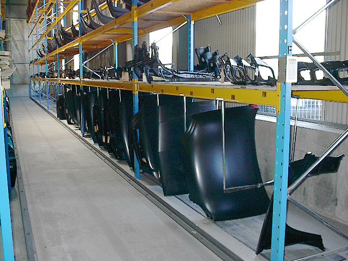 Opslag voor 18 auto’s. Het gelbijke aantal sloopauto’s gebruikt dankzbij de opslag in de robuuste draagarmstellingen nog maar 48 m² vloeroppervlak nodig. Elk voertuig is nu direct toegankelijk.De omvangrijke handling door het moeten verplaatsen van meerdere voertuigen valt weg.