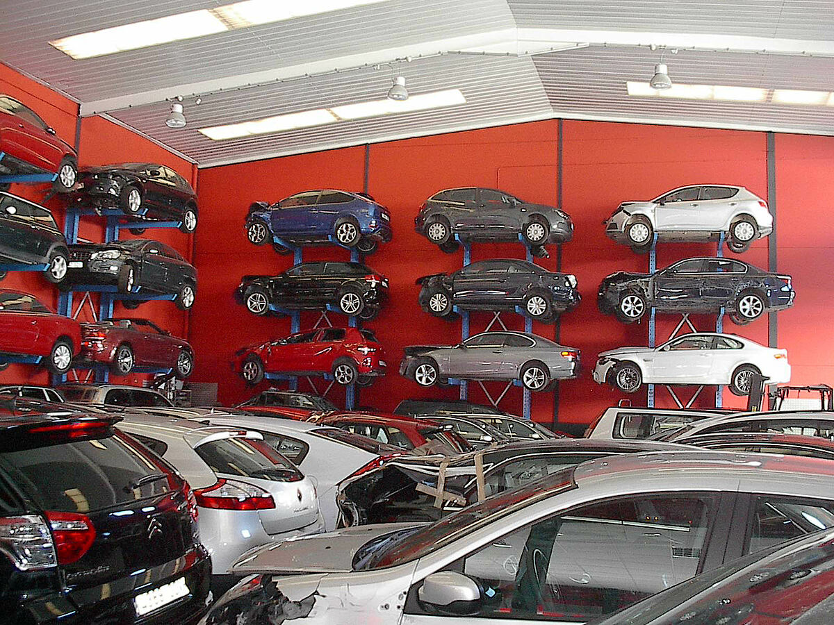 Opslag voor 18 auto’s. Het benodigde vloeroppervlak dat nodig is voor de conventionele opslag van 18 sloopauto’s is ca. 146 m². Geen directe toegang, omvangrbijke handling door het moeten verplaatsen van meerdere voertuigen.