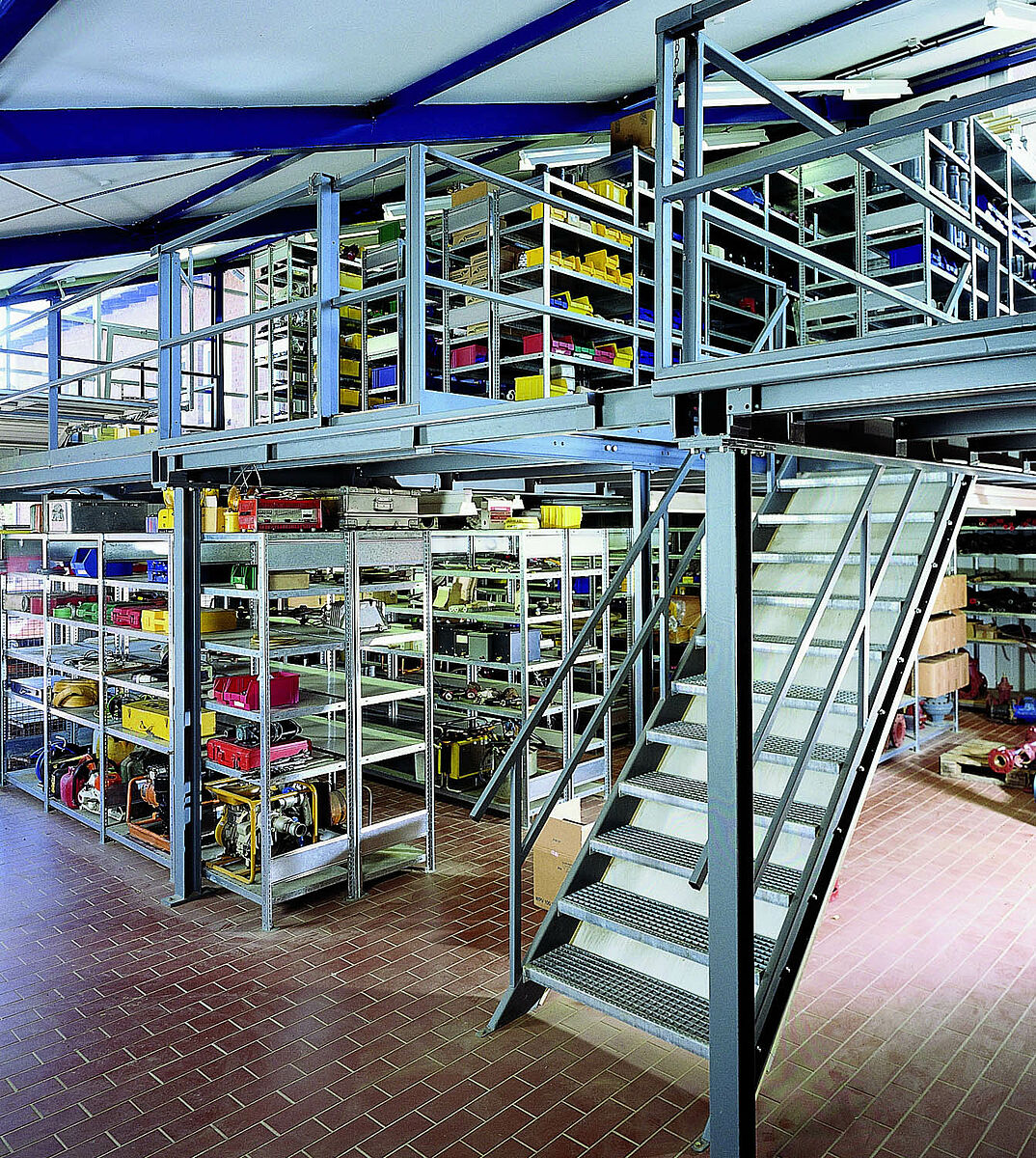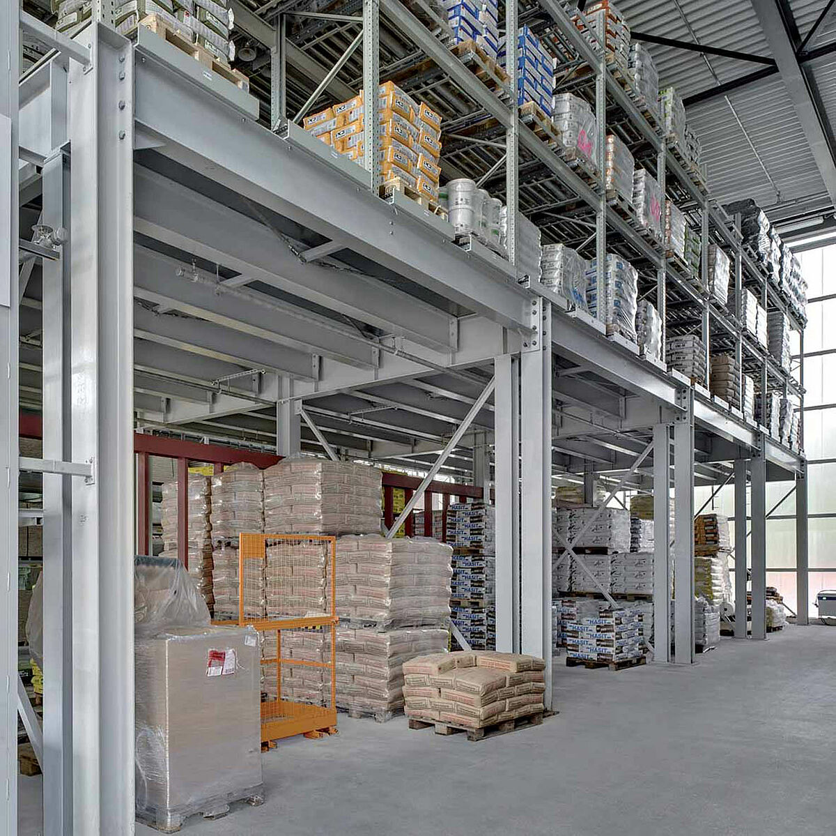 Elke vierkante meter van uw bedrijfsoppervlak kost geld. Gebruik daarom de hoogte van de ruimte optimaal en schep extra opslagoppervlak, zonder de bestaande bouwsituatie te wijzigen. De zelfdragende constructie past in elke bestaande hal en kan individueel aangepast worden aan de ruimteverhoudingen. Door de robuuste bouwwijze uit warmgewalste staalprofielen voor de dragende elementen zijn draaglasten tot 1.000 kg/vierkante meter voor ons standaard. Op verzoek kunnen wij ook hogere draaglasten ontwerpen. Stalen stellingen van OHRA kunnen op verschillende manieren gebruikt worden. Als extra opslagoppervlak, als commissioneringszone, als verkoopruimte of als arbeidsruimte, de individuele vormgeving heeft hierbij vele mogelijkheden.