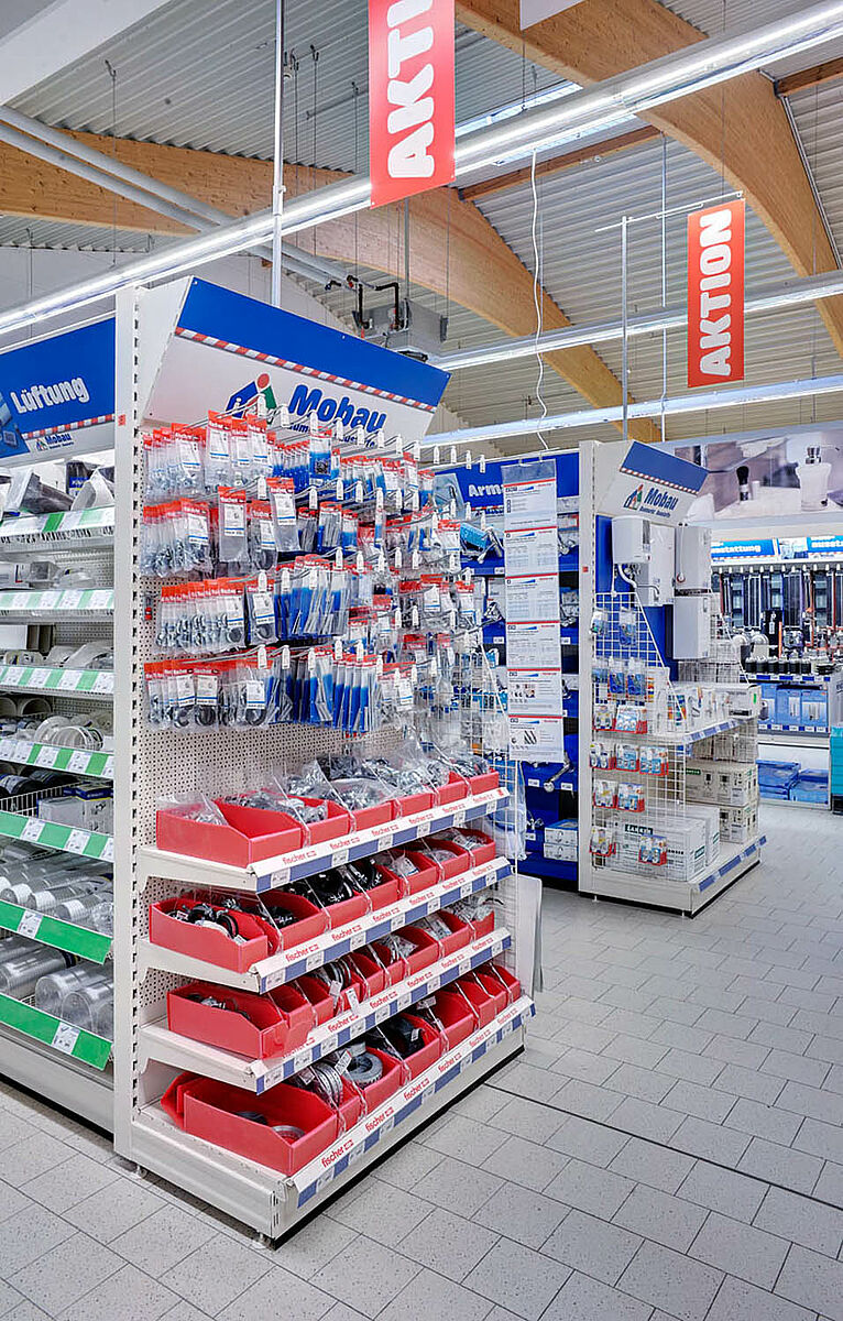 In DZ-Markten, Tuincentra en bijv. de vakschildermarkt zijn vakken voor zware goederen nodig zoals hout, verf, zand, cement en werktuigen. Voor deze doeleinden zijn er de robuuste palletrekken van OHRA. Zij bestaan uit warmgewalste staalprofielen in plaats van dunne plaat en bewijzen zich hierbij vooral bij zware belasting als efficiënt en veilig. Op deze rekeigenschappen dient in het bijzonder gelet te worden, waar personeel en klanten bij betrokken zijn. De hoge kwaliteit garandeert een lange levensduur en daardoor ook een voordelige oplossing voor uw opslagplaats.