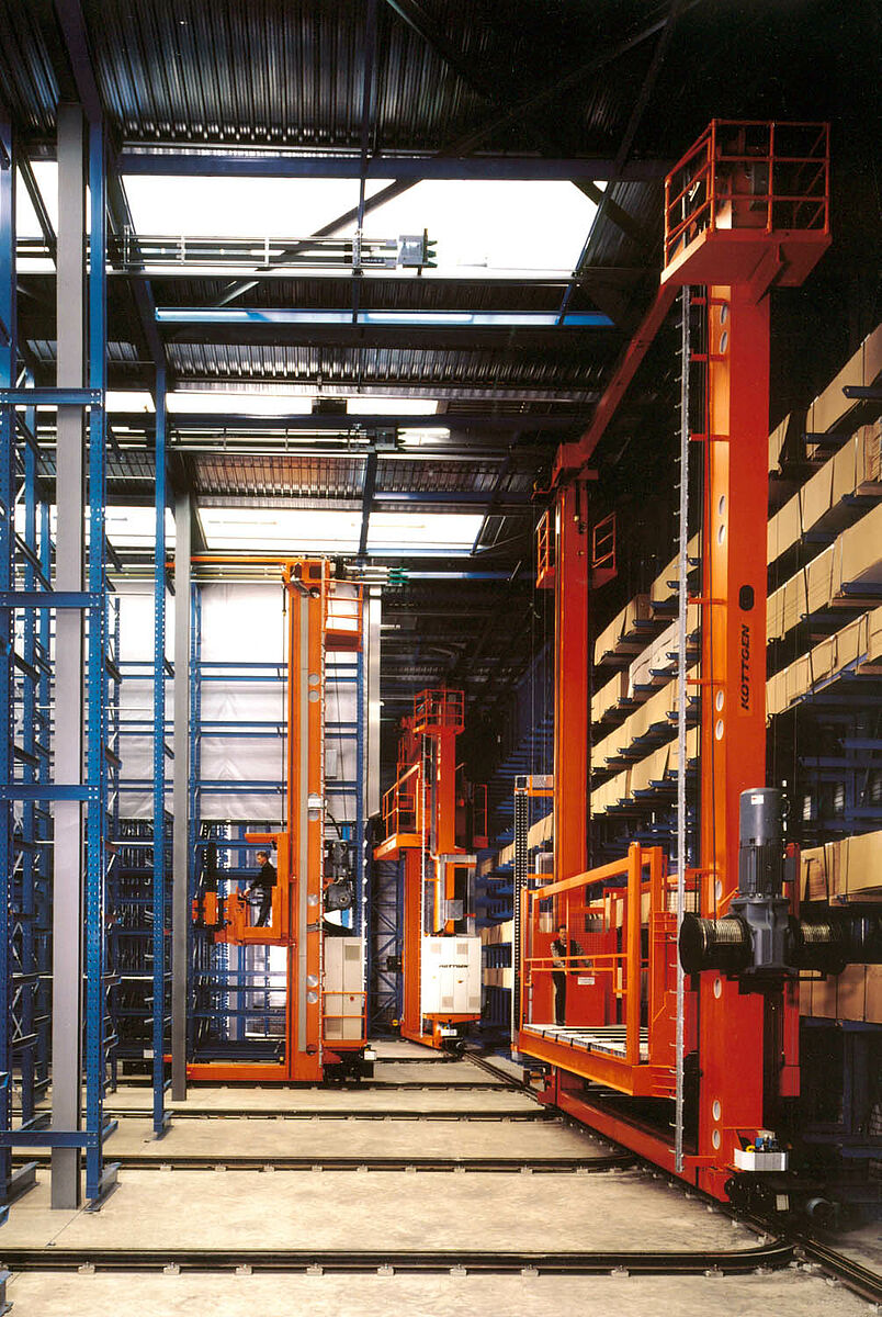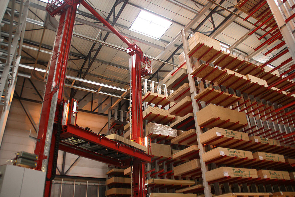 Opslagoptimaliseringen door gedeeltelijke of volledige automatisering van opslag- en uitvoerhandelingen. Volgens het principe «Goederen naar de man» verhogen de prestaties bij drukke loshandelingen. Al naargelang de behoefte kunnen hele pakketten of afzonderlijke platen uitgenomen en naar het overgavestation getransporteerd worden.