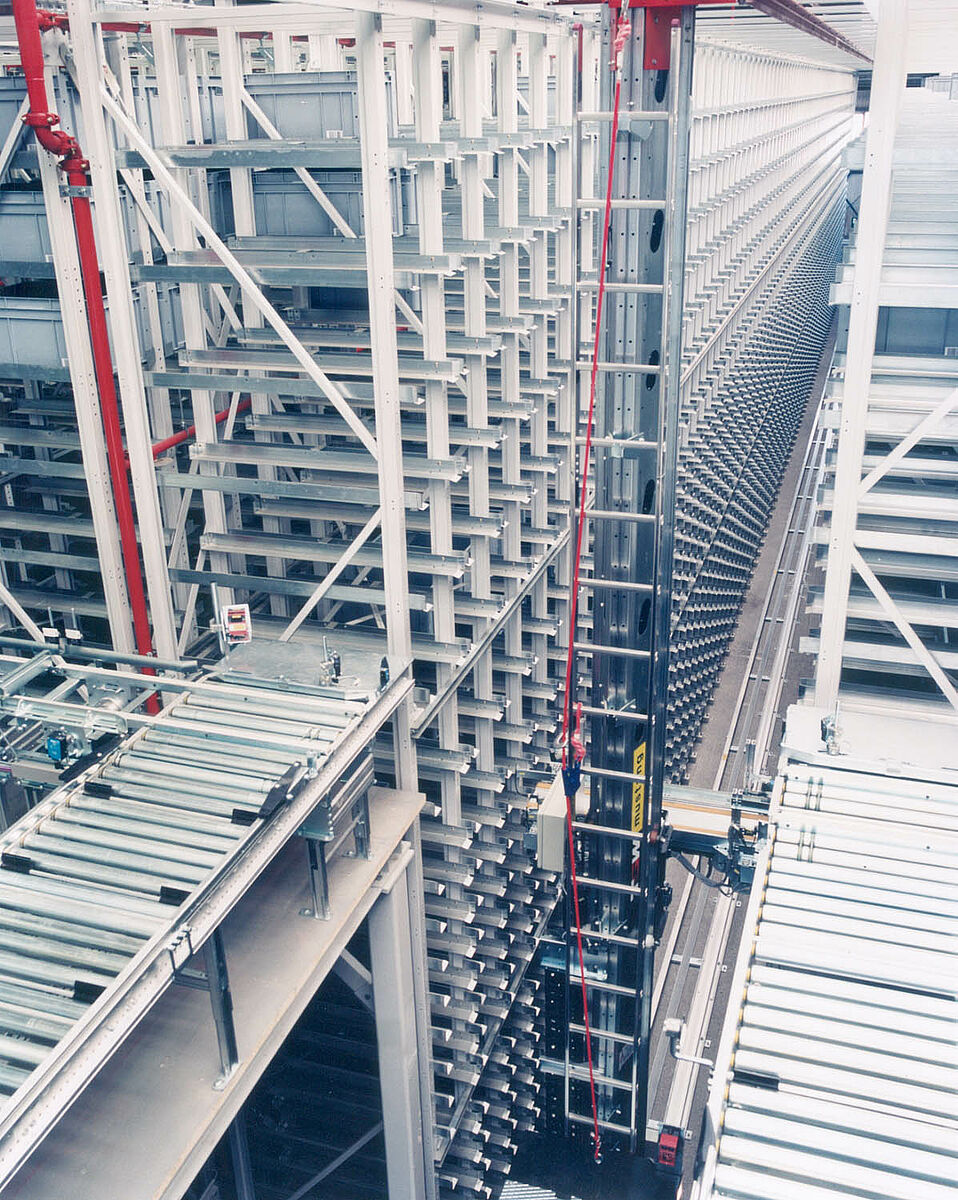 Opslagoptimalisering door gedeeltelijke en volledige automatisering van in- en uitslaghandelingen. Volgens het principe „goederen direct naar de klant“ verhoogt dit de prestatiecapaciteit bij een hoog aantal orderverzamelingen. Al naar gelang de vereiste kunnen één of meerdere pakketten met verschillende plaatformaten of bundels met ronde materialen uitgenomen worden en naar het overgavestation worden getransporteerd. De handeling gebeurt met een rolbrug of met rekkenbedieningstoestellen (RBT).