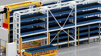 2. De TowerMat TM-FE is ontworpen voor middelgrote opslagcapaciteiten en maakt dankzij meerdere opslagtornsen en een centrale magazijnkraan een bijzonder hoge efficiëntie mogelijk.