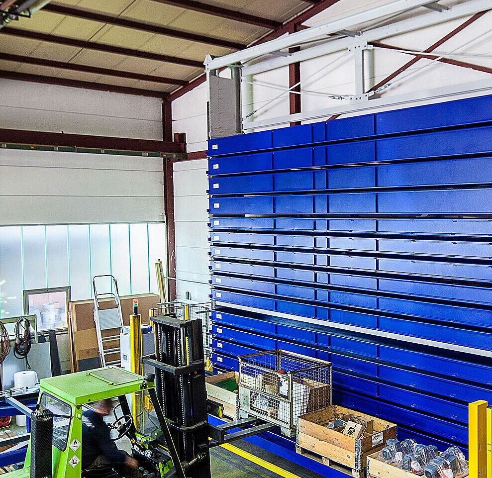 Verticaal opslagsysteem voor zware lasten in drie uitvoeringen