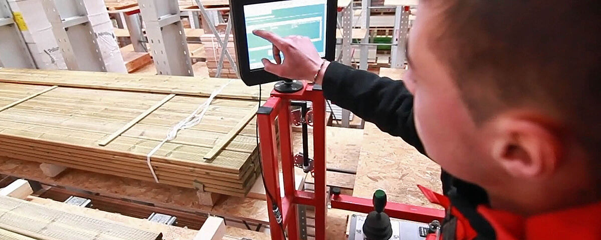 Het stellingbedieningstoestellen gaat automatisch naar de locatie die eerder door de operator is bepaald. De exacte positionering voor de locatie gebeurt volledig automatisch, terwijl de opslag en het ophalen van bijv. houten panelen door de operator wordt aangestuurd via een manueel commando. Dit omvat het opheffen en neerlaten van lasten en de rijrichting van de vorken.