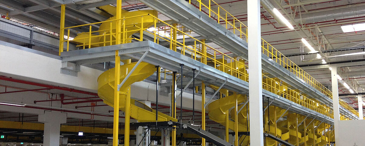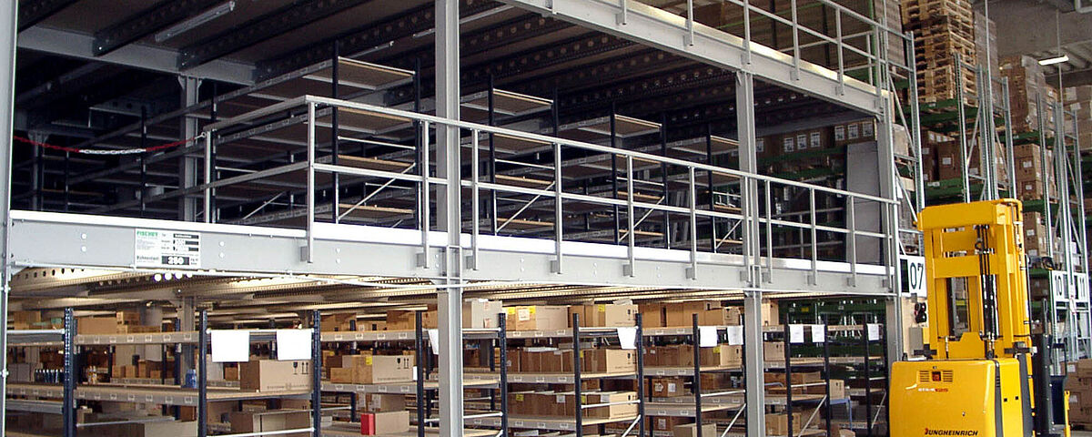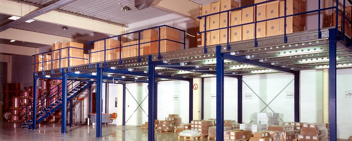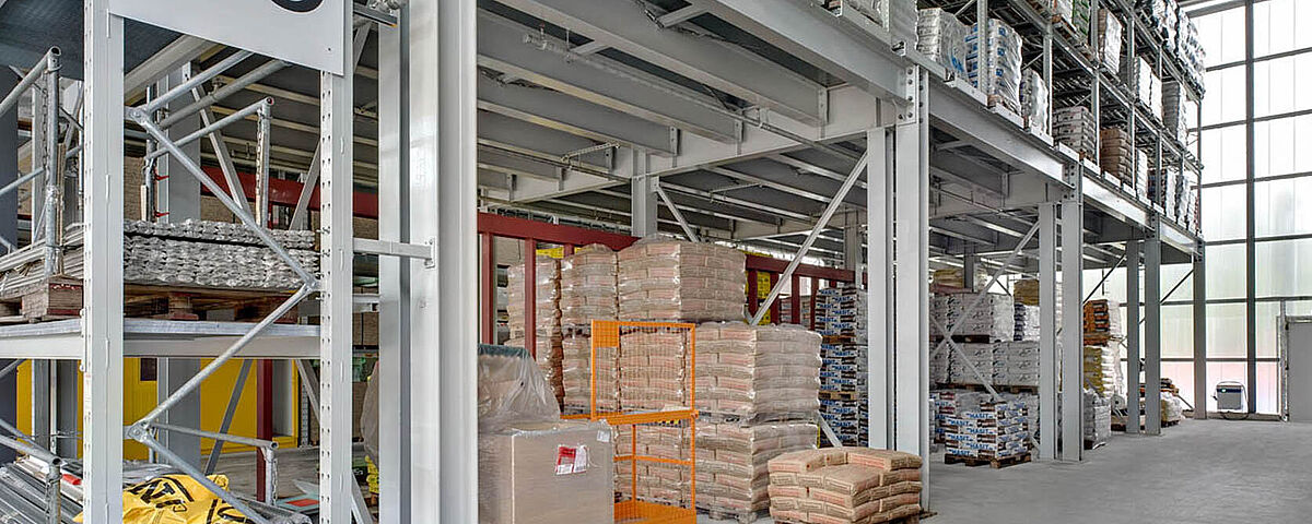 - Sterke profielen uit staal maken grote overspanning mogelijk onder het mezzanine
