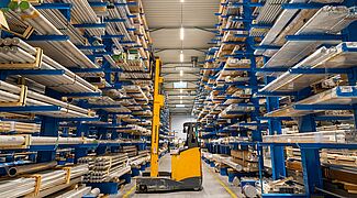 Voor een hogere opslagcapaciteit en een efficiëntere logistiek heeft Adamet-Niemet zijn grondstoffenmagazijn uitgerust met draagarmstellingen van OHRA. De vroegere opslag op de vloer en in verschillende kleinere stellingen bood niet langer voldoende capaciteit voor de groeiende activiteiten van de metaalgroothandel. Bovendien leidde de veelvuldige verplaatsing van de opslag steeds weer tot schade aan de opgeslagen platen, staven en profielen. Met meerdere rijen draagarmstellingen tot 8.570 millimeter hoog kon het bedrijf extra opslagcapaciteit creëren, de opslag- en orderverzamelprocessen versnellen en schade aan de gevoelige opgeslagen goederen beperken.