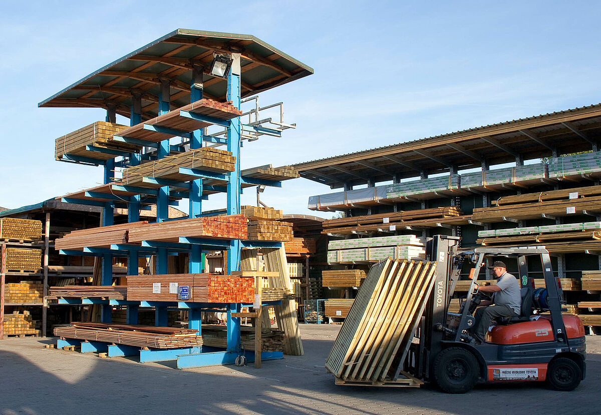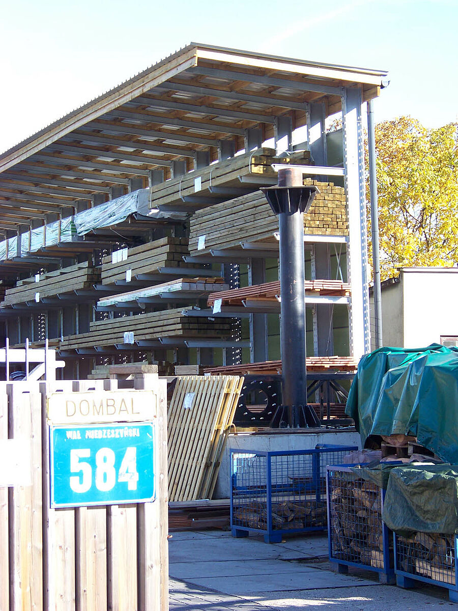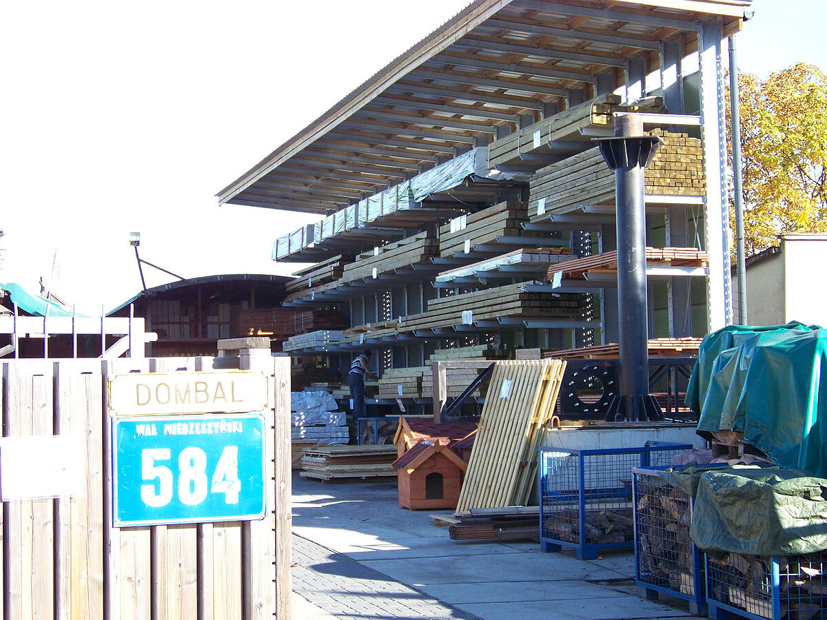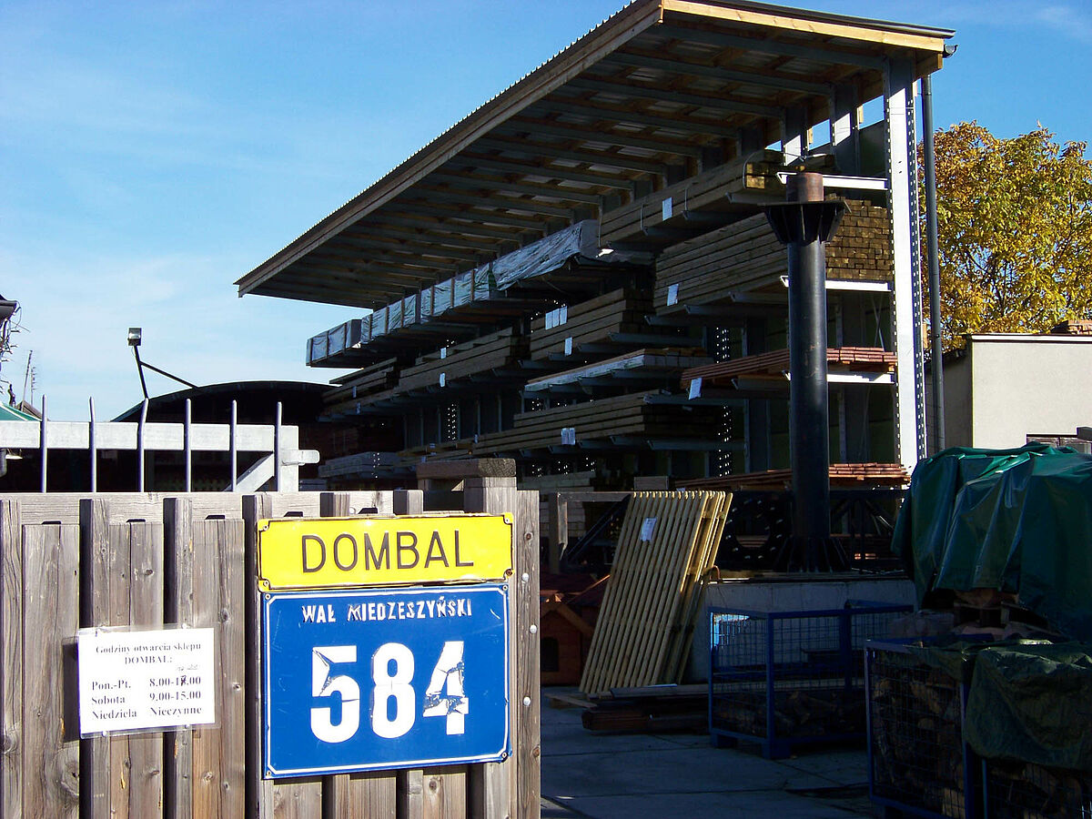 Een groeiend productassortiment en steeds frequenter toegang tot opgeslagen goederen waren voor het Poolse handelshuis Dombal de redenen om de opslag voor zijn houten constructiebalken te moderniseren. Gebruikt werden draagarmstellingen van OHRA die niet alleen dankzij het geïntegreerde dak de goederen beschermen tegen weersinvloeden, maar met hun stabiele constructie ook een voor klanten en medewerkers veilige opslag van de zware houten pakketten mogelijk maken.
