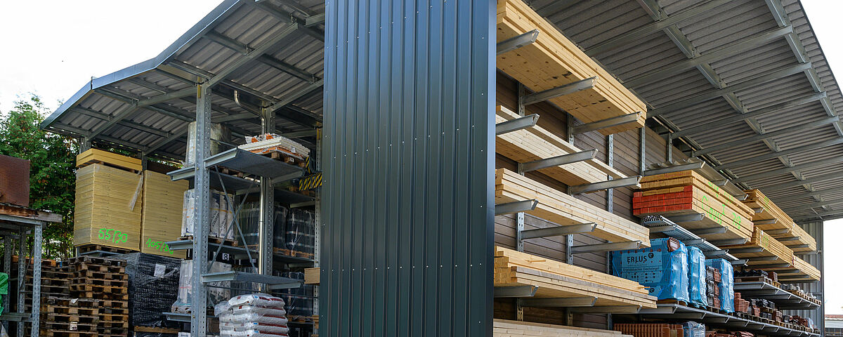 Gaigher + Penn, gespecialiseerde dealer in bouwmaterialen voor daken en gevels uit het noorden van München, heeft zijn stellingen, deels zelf gelast, vervangen door een professioneel stellingensysteem van OHRA. Door hun draagvermogen bieden de draagarmstellingen niet alleen meer opslagcapaciteit, maar ook aanzienlijk meer veiligheid voor medewerkers. Bovendien beschermt de geïntegreerde dakconstructie de goederen tegen weersinvloeden. Met het nieuwe stellingensysteem kon het bedrijf ook in de bestaande hal ruimte creëren voor een uitgebreid assortiment metalen platen – en daarmee zijn reputatie als totaalleverancier in de dak- en gevelsector onderstrepen.