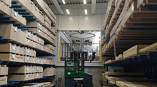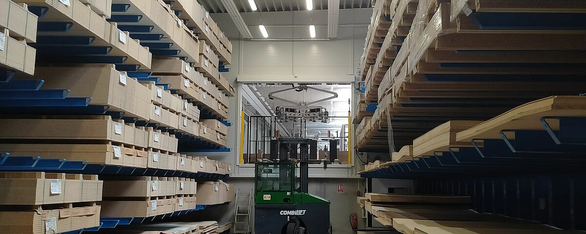 Het nieuwe bedrijfsgebouw is de logische voortzetting van de ontwikkeling van Gerbrich van een kleine timmerfabriek opgericht in 1897 tot een productiebedrijf uitgerust met de modernste technologie. Een zeer efficiënte productie vereist een betrouwbare toelevering van de benodigde materialen – spaanplaten laminaatpanelen, deurbekleding en andere componenten die nodig zijn om de deuren te maken.