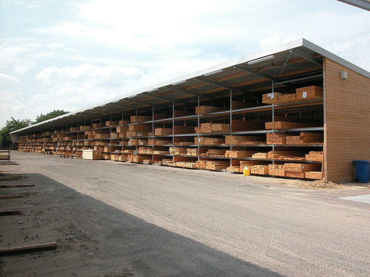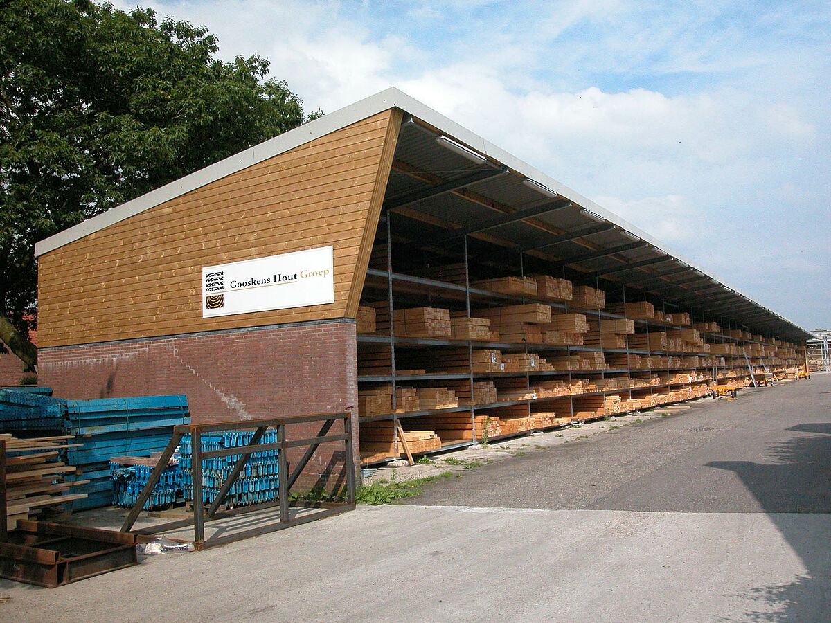De oude, nog in eigen beheer gebouwde houtopslag in de open lucht stootte met zijn twee opslagniveaus echter op zijn grenzen. Ook de klanten van Gooskens rationaliseren immers hun processen en minimaliseren hun voorraden. Dat vergt navenant meer capaciteit bij de houtleveranciers om een snelle en zekere levering te kunnen garanderen. Gooskens besloot daarom een nieuw magazijn te bouwen. Het bijzondere daarbij: het magazijn moest als honingraatstelling worden uitgevoerd; dat wil zeggen, de houten balken en latten worden in de lengte in de 6500 mm diepe vakken gestoken. Dat maakt een beter overzicht over de opgeslagen profielsoorten en snel met de hand verzamelen mogelijk.