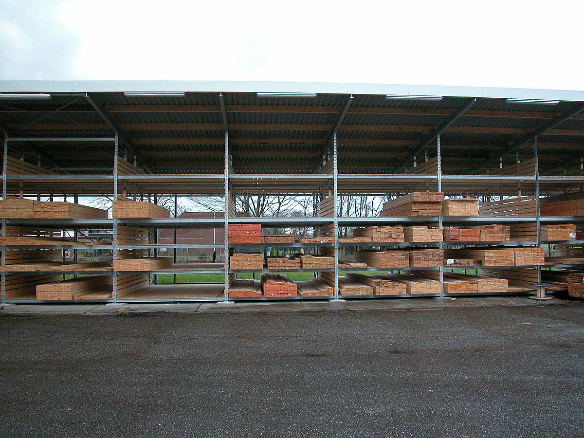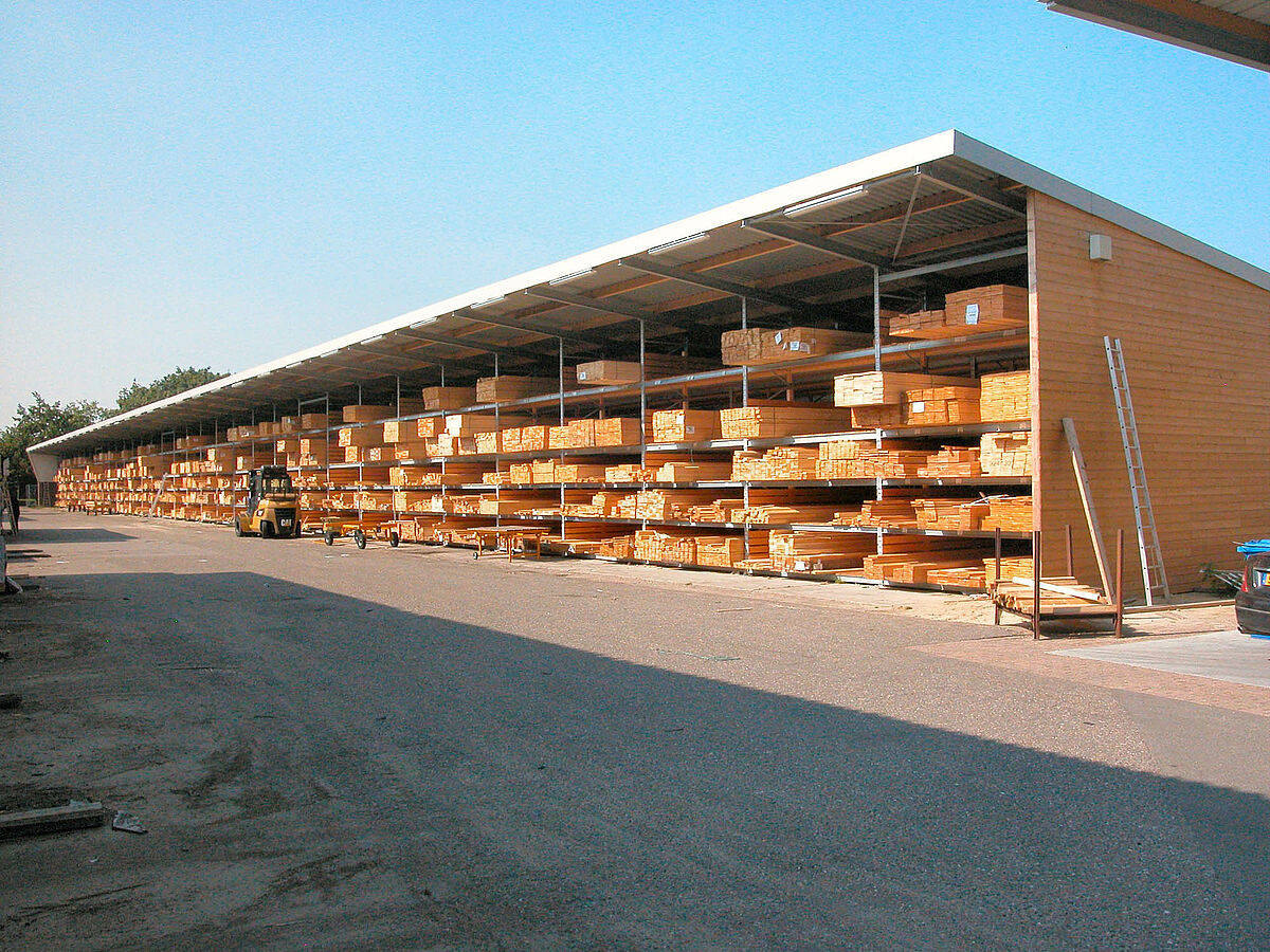 Dankzij het nieuwe magazijn kan Gooskens nu niet alleen meer hout per vierkante meter opslaan, maar ook zijn de rijafstanden bij het verzamelen van orders door de compacte opslag verkleind.