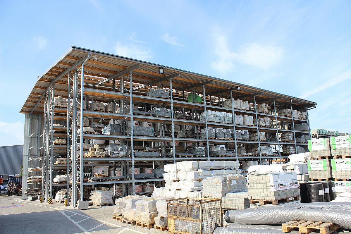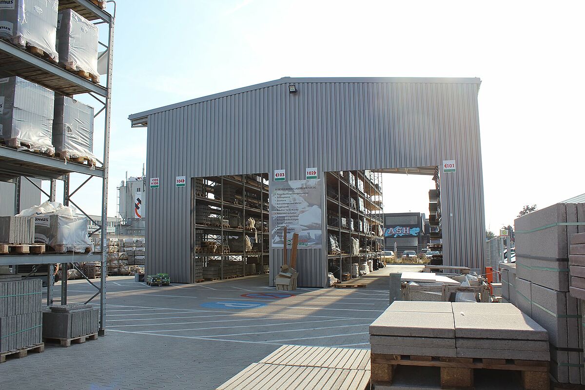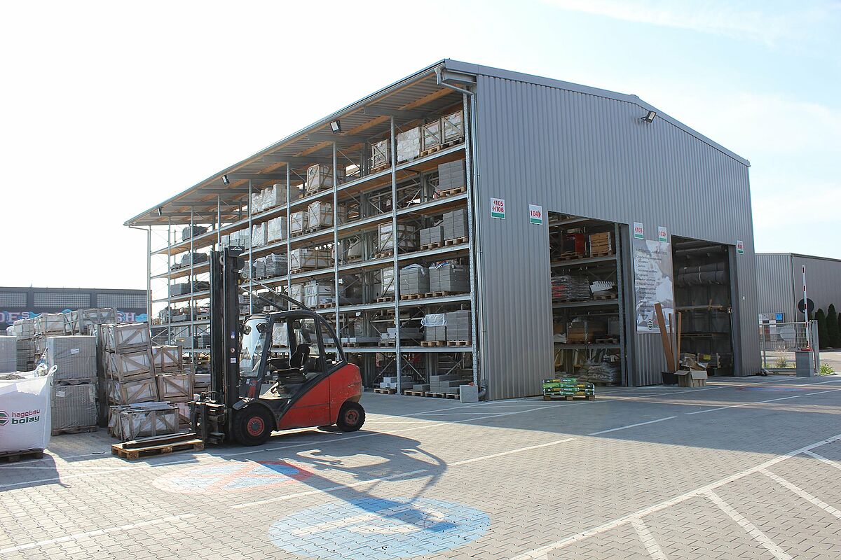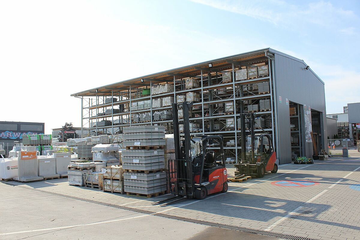 Het Hagebaucentrum Bolay, gelegen in Rutesheim, in de buurt van Stuttgart, heeft nieuwe ruimte gecreëerd voor tuin- en landschapsarchitectuurproducten met OHRA draagarm- en palletrekken. De realisatie van de nieuwe opslagruimte als een gedeeltelijk gesloten hal in een rekkenhalconstructie, waarbij de reksteunen tegelijk als dragende onderbouw voor dak en muur dienen, maakte een bijzonder korte bouwtijd mogelijk.