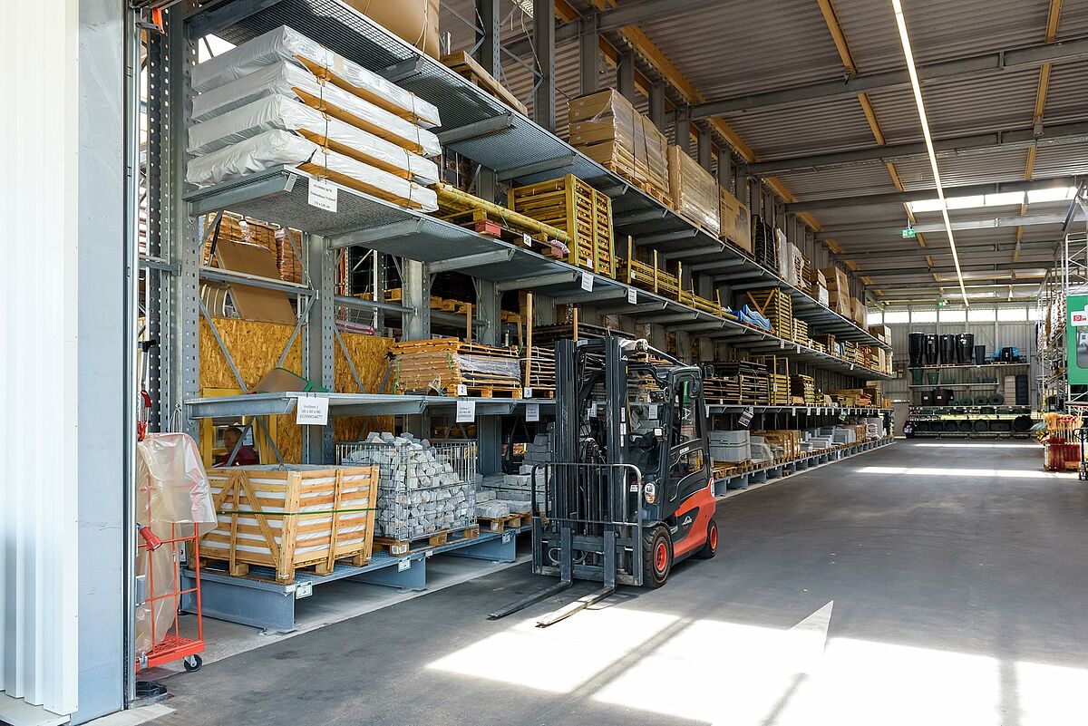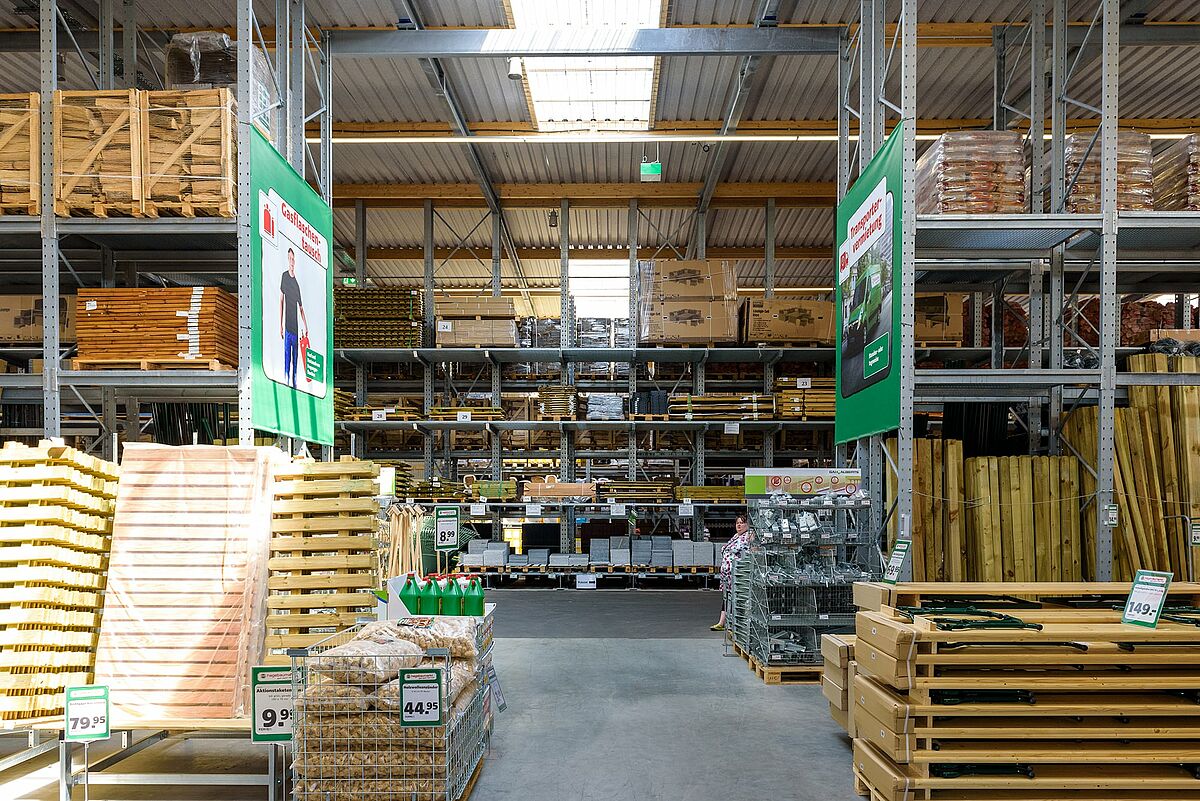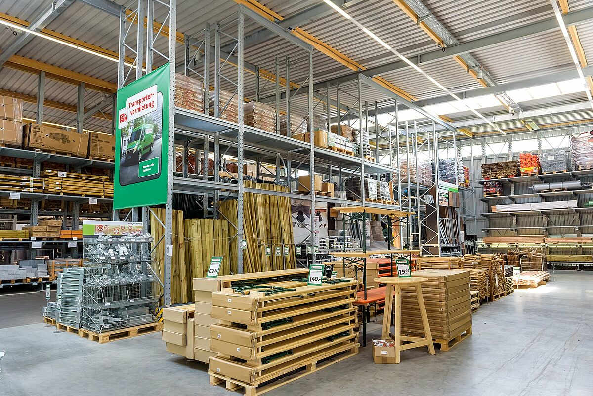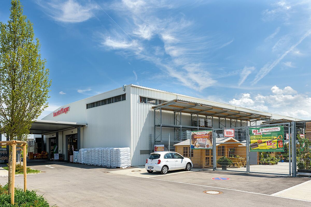 Het complete Hagebau-assortiment met tuincentrum en bouwmaterialenhandel kan worden aangeboden in de ruime verkoopruimte van de locatie die eind 2018 werd geopend. De drive-in-hal alleen al beslaat een oppervlakte van ongeveer 2.000 vierkante meter.