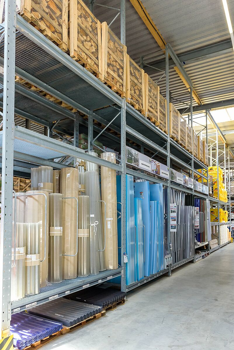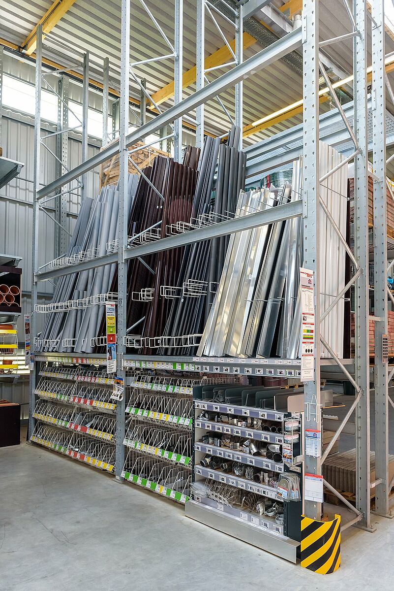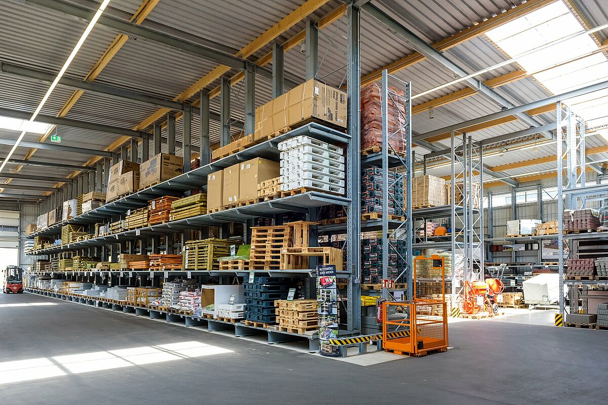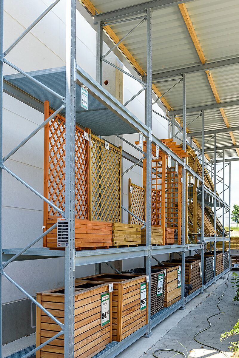 Om de tuin- en houtproducten op te slaan besloot Jos. Schneider voor een mix van tot 48 meter lange draagarm- en palletstellingen. Om een continue opslag van verschillende artikelen in de draagarmstellingen te realiseren, zijn alle opslagniveaus voorzien van roosters. Door het gebruik van stalen profielen met massieve wanden voor alle dragende elementen, bereiken de rekken van OHRA een hoog draagvermogen. Bovendien kunnen de profielen elastisch meegeven bij impact en permanent hun statische eigenschappen behouden. Ze bieden ook een permanente basis voor het dak en de wanden.