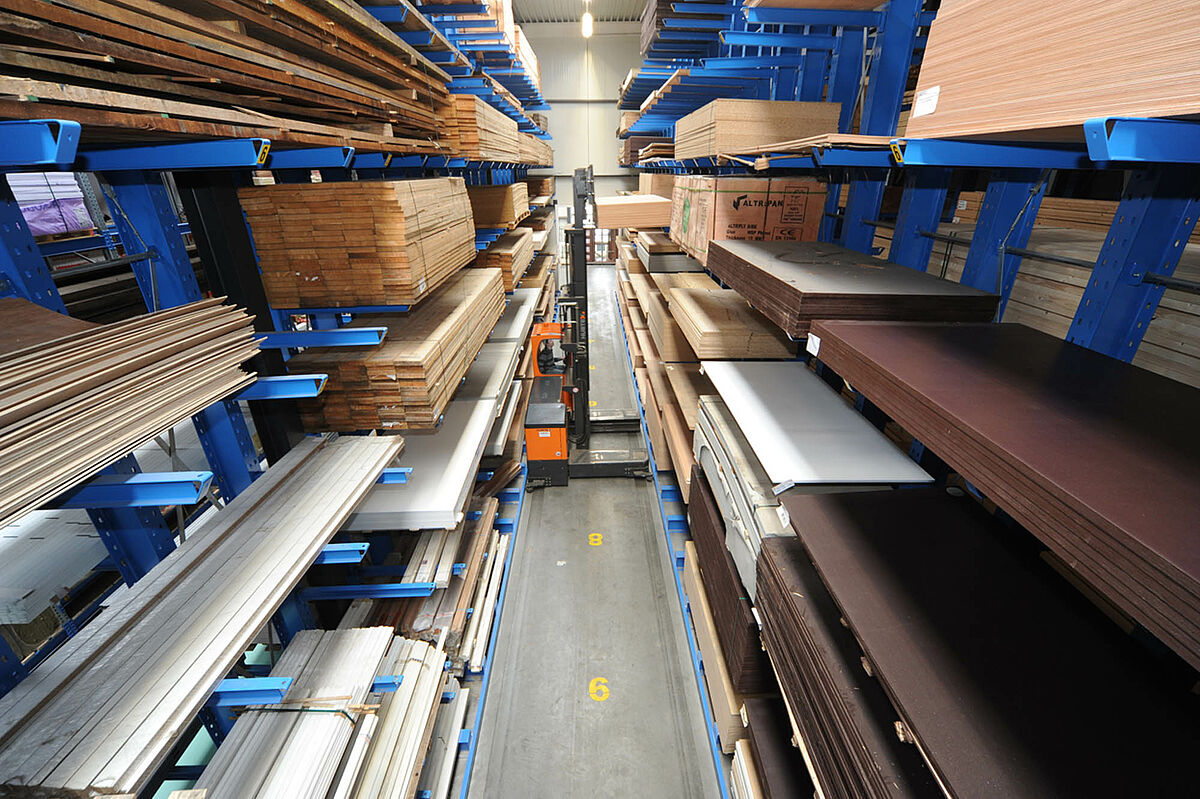 Om hout, platen en materialen optimaal op te kunnen slaan, bouwde OHRA in slechts twee maanden tijd elf 36 meter lange rijen met draagarmstellingen en twee palletstellingrijen. Met een stellinghoogte van 9 meter wordt het beschikbare oppervlak optimaal gebruikt en worden de rijwegen voor de vierzijdige vorkheftrucks verkleind. De palletstellingen bieden met vakbreedtes van 2700 mm op zes niveaus in totaal 462 stellingplekken. De draagarmstellingen maken opslag van platen en langwerpig hout mogelijk op negen niveaus, de armlengte varieert tussen 1100 en 1550 mm. Omdat ITS ook zwaar hardhout verkoopt, zijn enkele stellingzones bovendien als zwaargewichtstelling uitgevoerd.