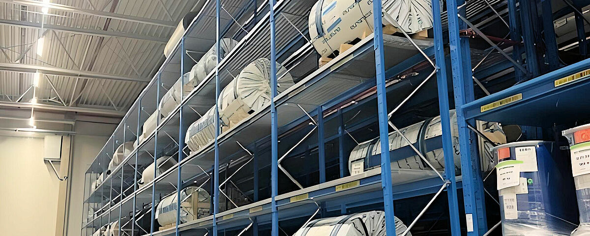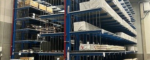 De combinatie van kraagarm- en palletstellingen maakt de opslag van zo verschillende materialen mogelijk zoals lijmen, aluminium- en GVK-rollen, multiplexpakketten, PVC-vloeren of houten en polyurethaanschuim-lijsten. Een voordeel van OHRA's stellingen, die gemaakt zijn van warmgewalste stalen profielen, is hun hoge draagvermogen: Bij Knaus Tabbert dragen de kraagarmstellingen bijvoorbeeld tot 12 ton per staander, en het mogen van een enkele kraagarm bedraagt tot 1.000 kilogram – zelfs op het hoogste opslagniveau op een hoogte van 7,5 meter. De GVK-rollen met een gewicht tot 1,2 ton en de rollen van plaatmetaal met een gewicht tot 1,8 ton worden daarentegen opgeslagen in palletstellingen. Roosterbodems zorgen voor flexibele opslag, ongeacht het formaat van de laadhulpmiddelen voor de rollen. Ook in de draagarmstellingen zorgen roosterbodems er soms voor dat er een grote verscheidenheid aan bakken en laaddragers kan worden opgeslagen.