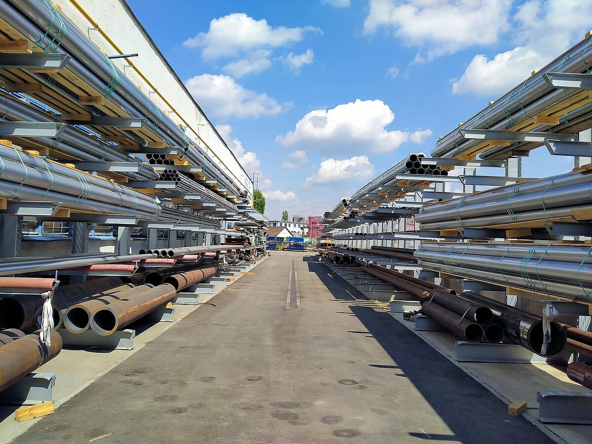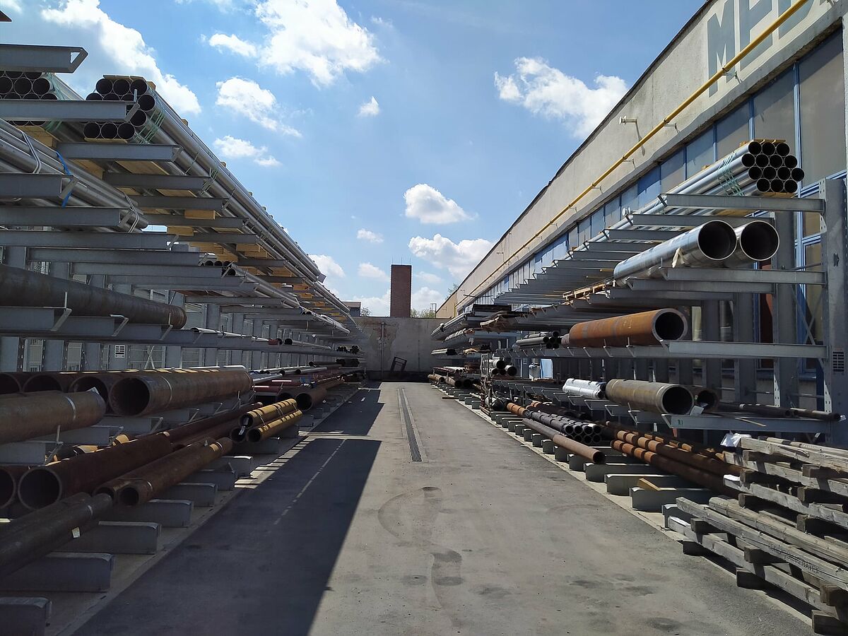 Het Tsjechische bedrijf Mebatex, dat op zijn locatie in Brno rollen produceert voor de textielmachine-industrie, heeft de capaciteit van zijn buitenmagazijn uitgebreid met draagarmstellingen van OHRA. Tot nu toe lagen de stalen buizen en buizenbundels, die het uitgangsmateriaal voor de rollen vormen, op de grond. Door gebruik te maken van de heavy-duty draagarmstellingen, kan nu de ‘derde dimensie’ worden benut en kan er aanzienlijk meer materiaal in dezelfde ruimte worden opgeslagen. Tegelijkertijd verbetert de opslag in draagarmstellingen de toegang tot de benodigde buizen en wordt de voorraadhoogte eveneens overzichtelijk.