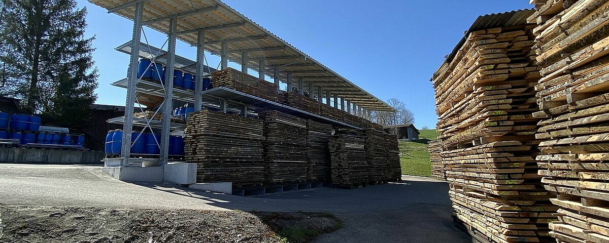 Tot nu toe had Nyfeler beukenblokken opgeslagen, die de schrijnwerkerij gebruikte voor de productie van de CUBORO-knikkerbaansystemen, evenals brandhout en andere items die buiten worden gestapeld. Maar de europallets die voor dit doel werden gebruikt, raakten voortdurend verweerd, wat resulteerde in gevaarlijk scheve stapels. Om bij de goederen te komen, moesten de artikelen ook voortdurend opnieuw worden gestapeld. Om ze tegen het weer te beschermen, dekte Nyfeler ook elke stapel met zeildoeken af, wat voor veel extra handelingen zorgde. Tenslotte nam het magazijn een te grote oppervlakte in beslag.