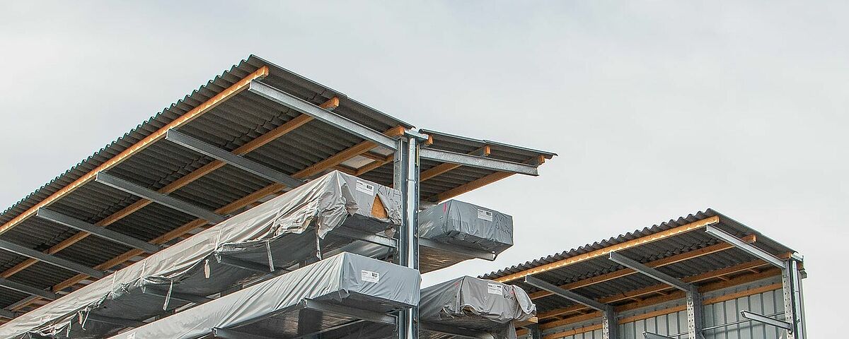 Om de toegang tot de artikelen te vereenvoudigen en het gehele in- en uitslagproces efficiënter te maken, besloot Obenauf het externe magazijn uit te rusten met draagarmstellingen van OHRA. Het bedrijf maakt al enkele jaren gebruik van opslagsystemen van de Europese marktleider voor draagarmstellingen. OHRA plaatste voor het nieuwe externe magazijn twee rijen enkelzijdige en tweezijdige stellingen. Op zes opbergniveaus en met 1,25 meter lange, variabel opgehangen draagarmen bieden ze beduidend meer opslagruimte dan mogelijk zou zijn met opslag op de vloer. Dakdragers zijn gemonteerd aan het bovenste uiteinde van de plankdragers; het twee meter diepe dak met een helling van 6 graden beschermt de opgeslagen goederen betrouwbaar tegen weersinvloeden.