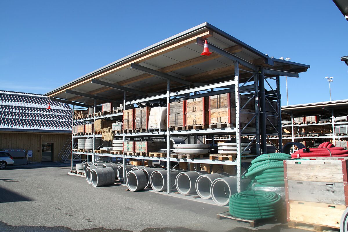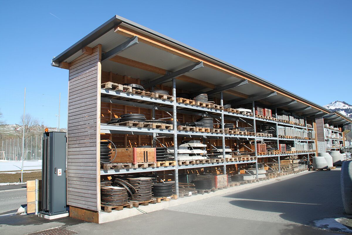 De buiten geplaatste pallet- en draagarmstellingen zijn voorzien van een dak om de opgeslagen goederen te beschermen; OHRA heeft de staanders voorzien van passende dakarmen en de dakbedekking gebeurde door een lokaal bouwbedrijf. OHRA ontwierp de statica van de stellingen voor de hoge sneeuwbelastingen die gebruikelijk zijn in Appenzell tot 484 kg per vierkante meter en windbelastingen tot 110 kg per vierkante meter.
