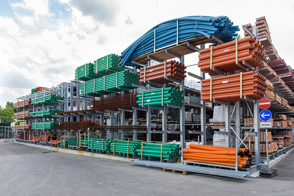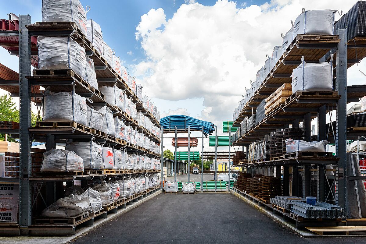 Schönreiter Baustoffe, gevestigd in Essenbach bij Landshut, breidde zijn assortiment uit met grondstoffen, bouwmaterialen en hout. Het bedrijf creëerde de nodige opslagcapaciteit voor binnen- en buitengebruik met behulp van draagarmstellingen en palletstellingen van OHRA. De combinatie van de stellingtypen maakt een zeer flexibele opslag van verschillende bouwmaterialen mogelijk. Met een stellinghoogte van meer dan 7.500 millimeter kunnen de nieuwe goederen zeer ruimtebesparend worden opgeslagen.