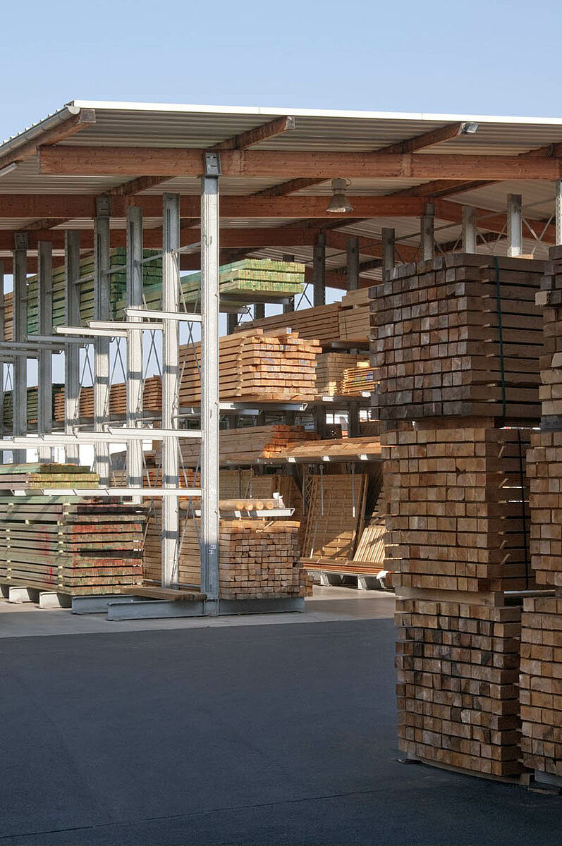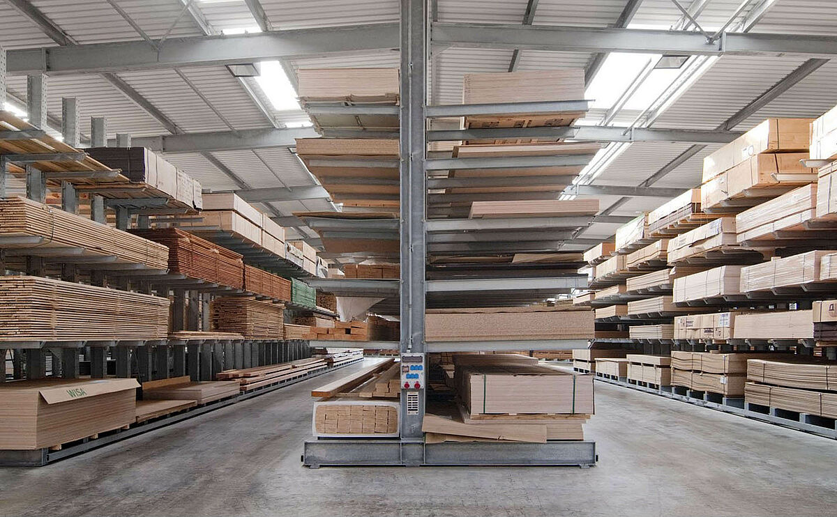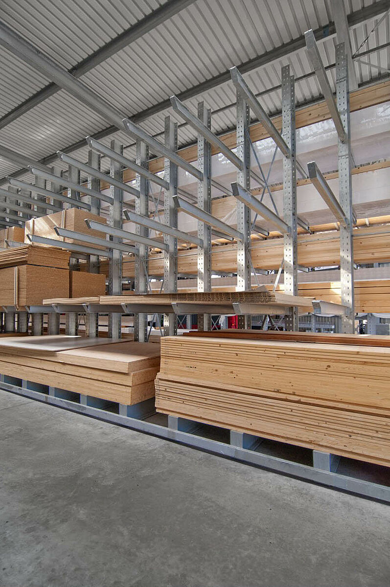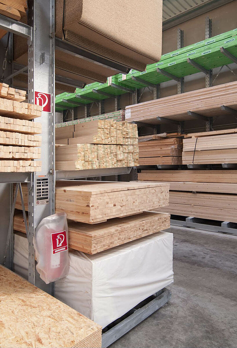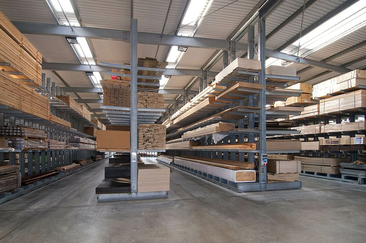 Het in Siegburg gevestigde Schyns GmbH biedt als groot- en detailhandel een veelomvattend houtassortiment voor particuliere en zakelijke klanten, van constructiehout tot tuinhuisjes. De houtartikelen worden bevoorraad vanuit een stellingmagazijn dat in de loop van 20 jaar voortdurend werd uitgebreid. Uit losse stellinggangen ontstond zo door de jaren heen een complete hal, die later nog eens wird verdubbeld. Zo kon het hele magazijn met de onderneming meegroeien.