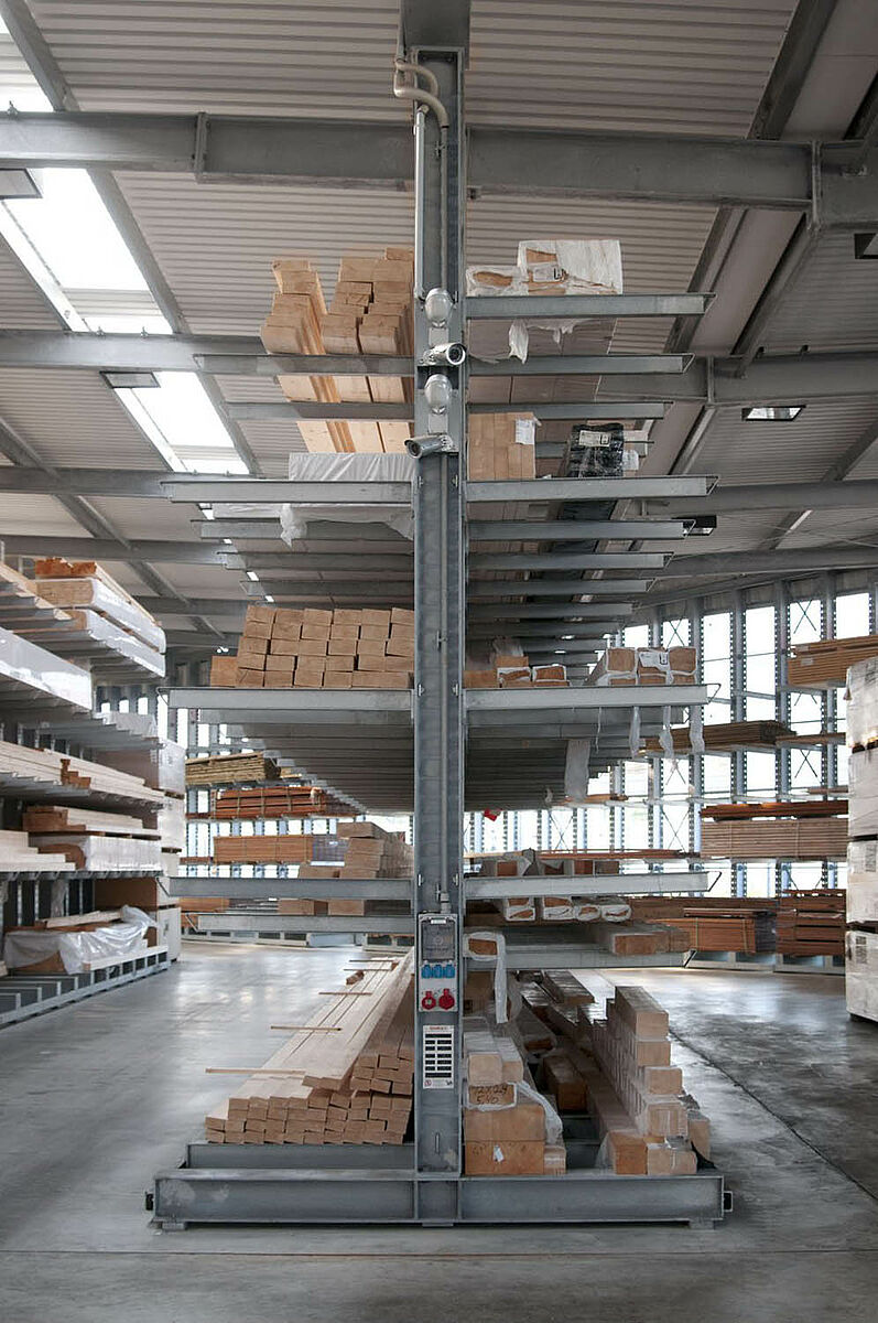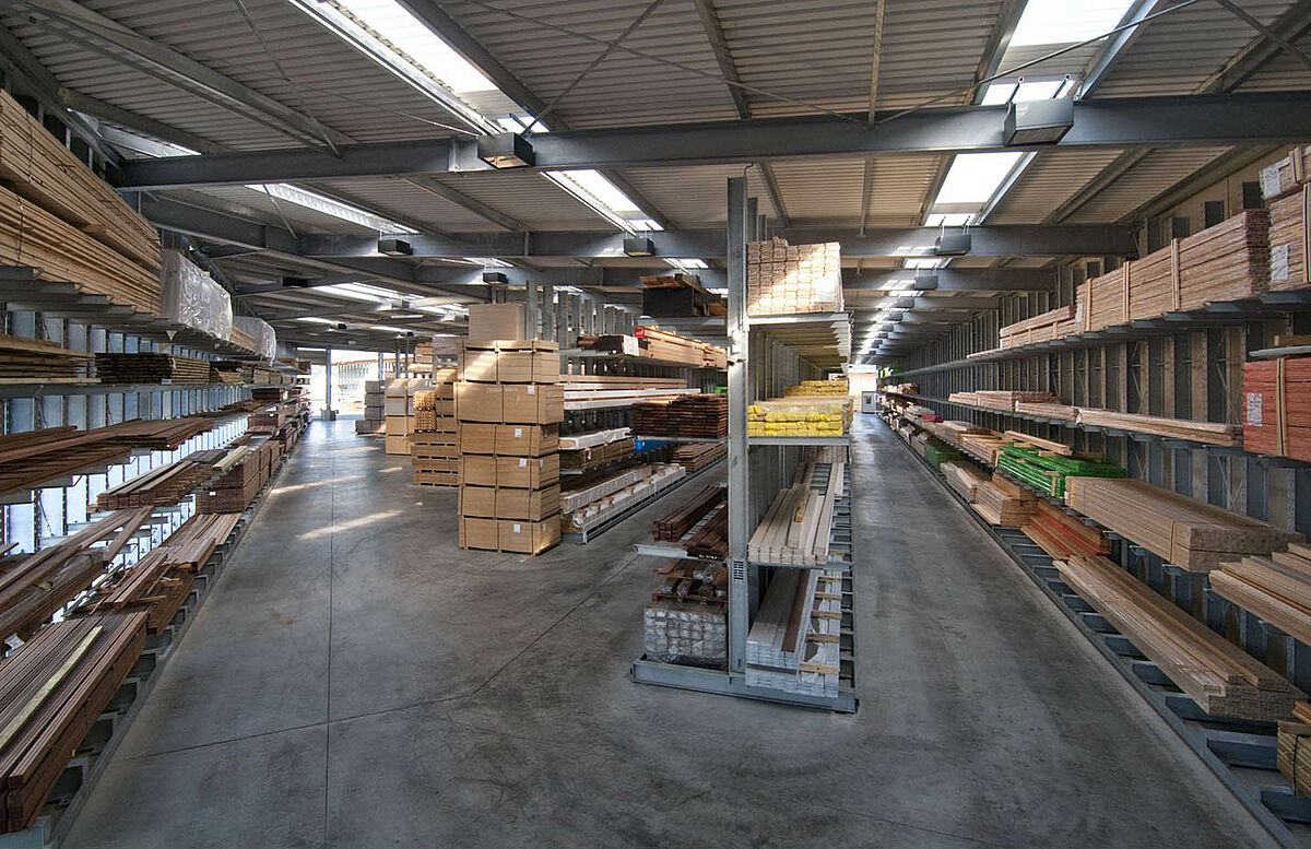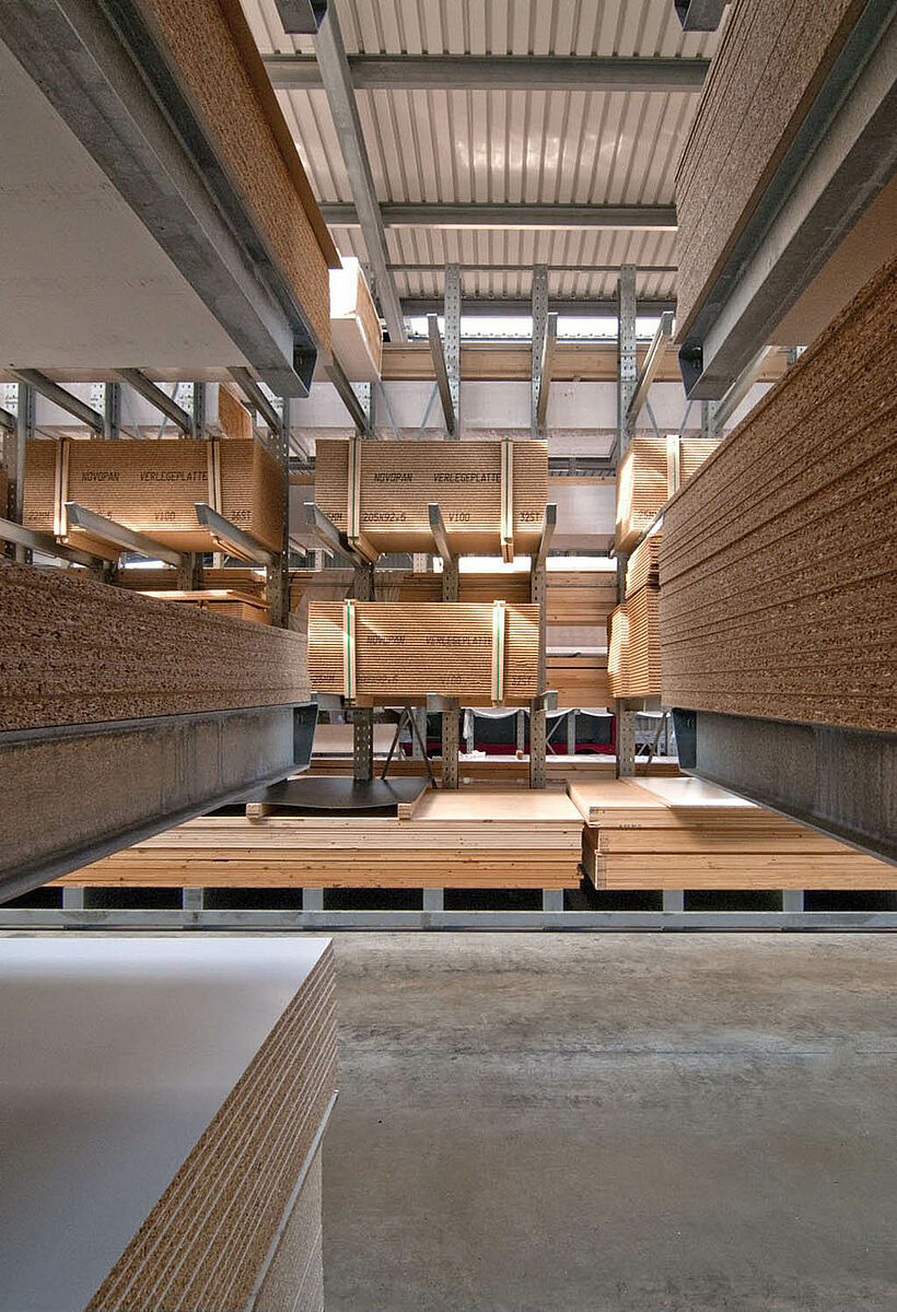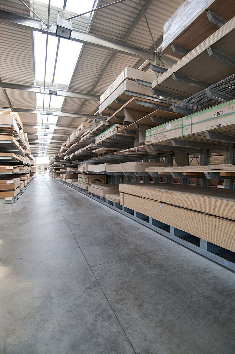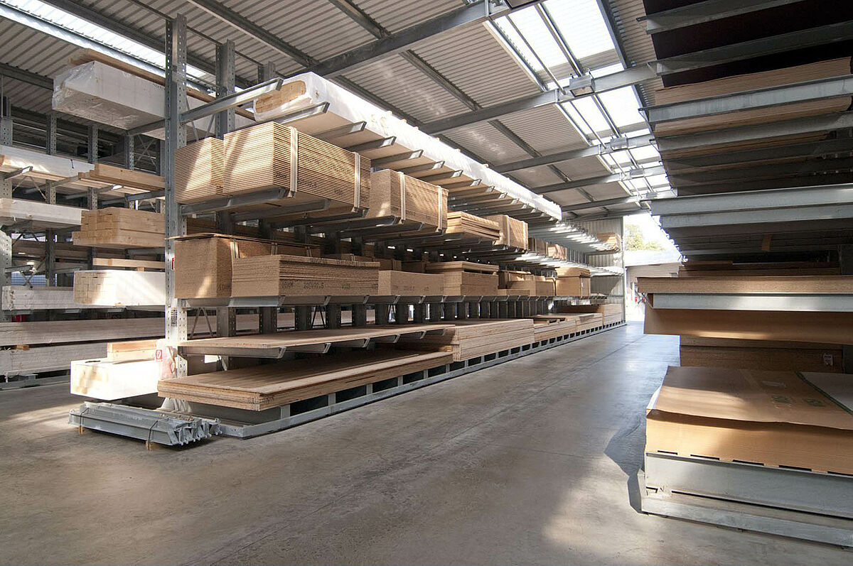Het in Siegburg gevestigde Schyns GmbH biedt als groot- en detailhandel een veelomvattend houtassortiment voor particuliere en zakelijke klanten, van constructiehout tot tuinhuisjes. De houtartikelen worden bevoorraad vanuit een stellingmagazijn dat in de loop van 20 jaar voortdurend werd uitgebreid. Uit losse stellinggangen ontstond zo door de jaren heen een complete hal, die later nog eens wird verdubbeld. Zo kon het hele magazijn met de onderneming meegroeien.