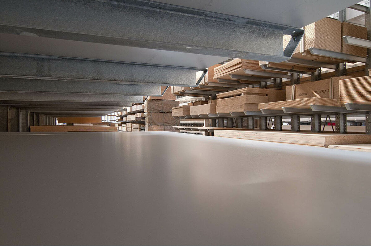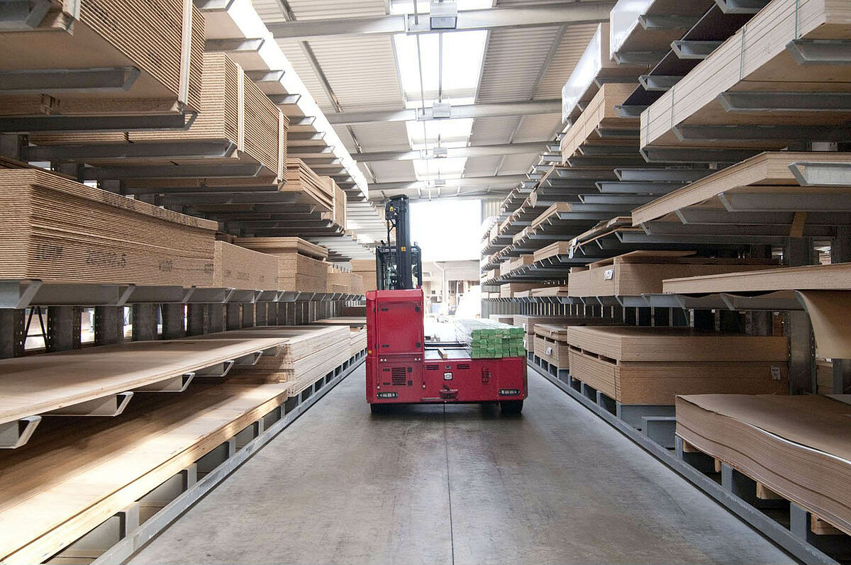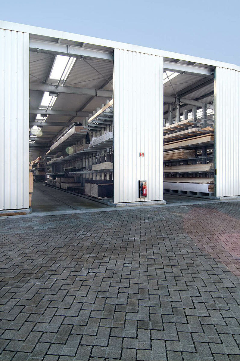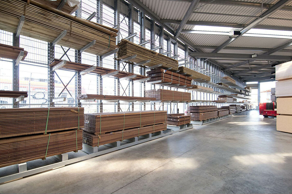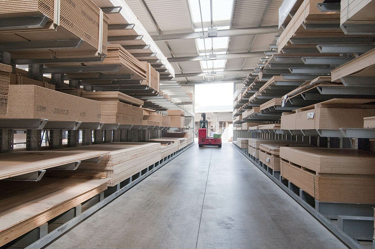 Het in Siegburg gevestigde Schyns GmbH biedt als groot- en detailhandel een veelomvattend houtassortiment voor particuliere en zakelijke klanten, van constructiehout tot tuinhuisjes. De houtartikelen worden bevoorraad vanuit een stellingmagazijn dat in de loop van 20 jaar voortdurend werd uitgebreid. Uit losse stellinggangen ontstond zo door de jaren heen een complete hal, die later nog eens wird verdubbeld. Zo kon het hele magazijn met de onderneming meegroeien.