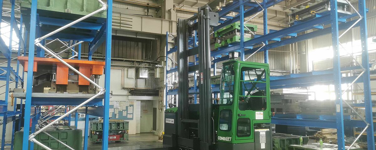 In vergelijking met de alternatieve opslag op de grond kan Solvaro met de nieuwe stellinginstallatie aanzienlijk meer dieptrekgereedschappen op het beschikbare oppervlak opslaan. Belangrijker is echter de directe, snelle toegang tot elk gereedschap: Een speciale vorkheftruck van Combilift die speciaal voor de dieptrekgereedschappen is aangeschaft, kan de zware gereedschappen gemakkelijk uit het rek tillen en rechtstreeks naar de dieptrekpers rijden. Tegelijkertijd is het dieptrekwerktuig dankzij de op maat gemaakte stellingconstructie te allen tijde beschermd tegen beschadiging.