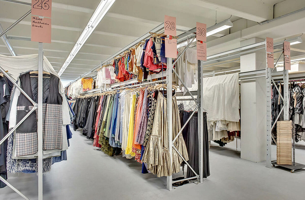 De aangrenzende hal met drie verdiepingen is bestemd voor de andere rekwisieten zoals meubels, lampen, voorwerpen voor decoratie, enzovoort. Een hele verdieping is gereserveerd voor kostuums, schoenen en accessoires. Geen wonder, want alleen de kostuums beslaan, dicht op elkaar hangend, rond de 2.400 strekkende meter aan kledingstellingen. Daar komen de stellingen voor schoenen, hoeden en andere garderobeonderdelen nog bij.