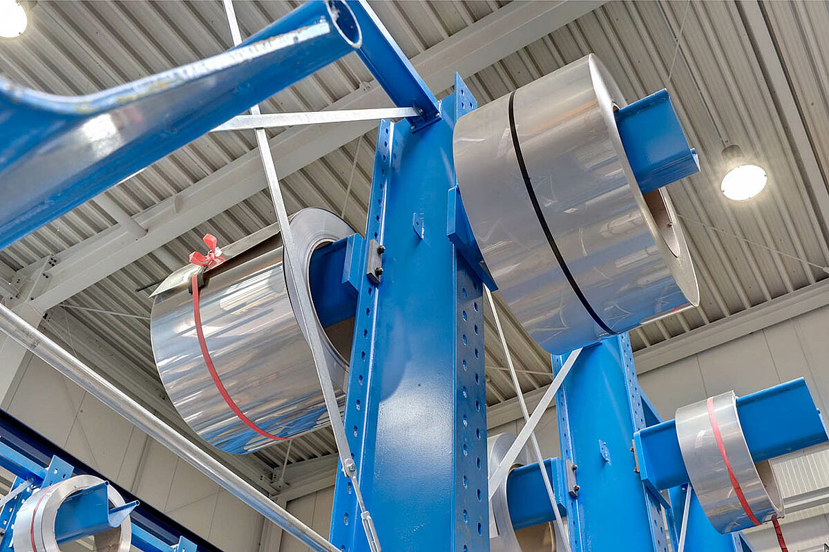 Voor het vervaardigen van deze apparaten worden stalen platen gebruikt die als coils (rollen) worden aangeleverd en voor de daarop volgende productie moeten worden opgeslagen. De coils hebben, al naar gelang het onderdeel, verschillende vaste breedtes en verschillen zodoende ook in gewicht.