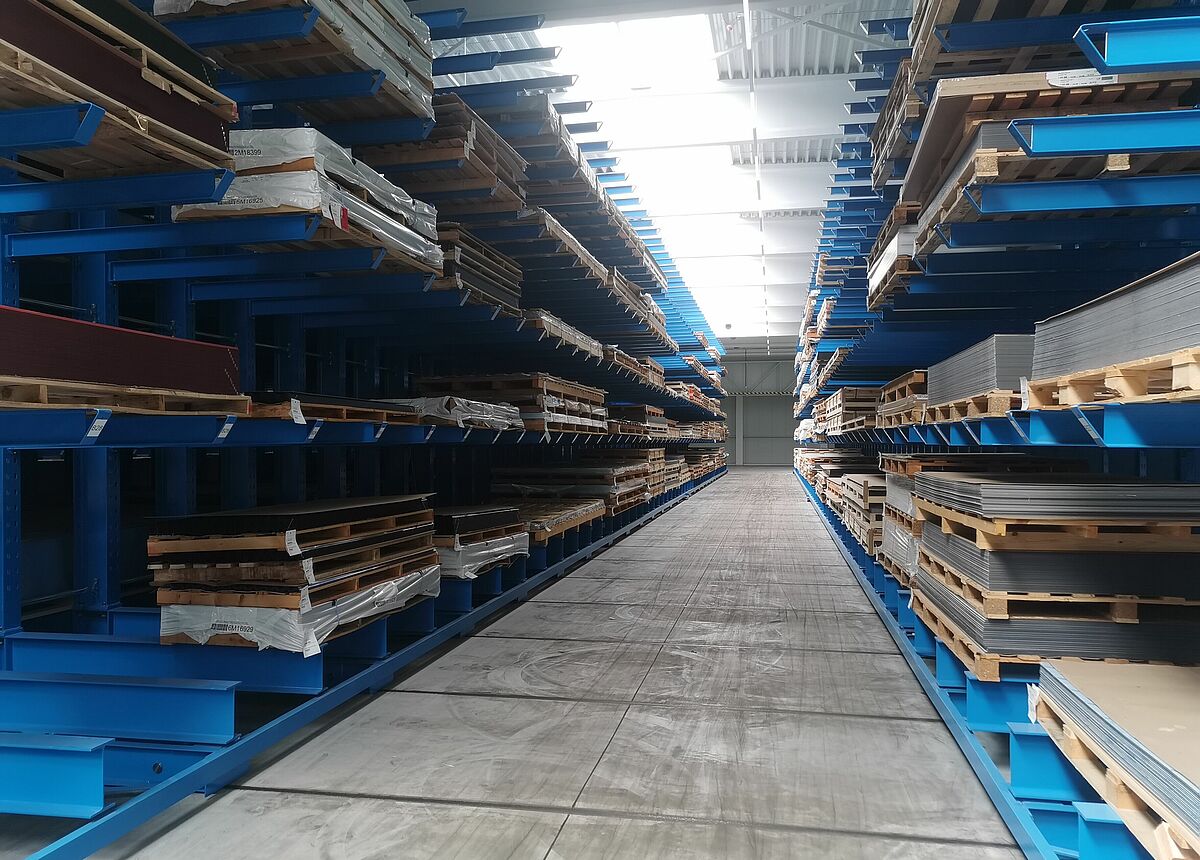 Tot nu toe sloeg thyssenkrupp Materials Hungary de kunststoffen platen, die tot 13 meter lang en 2100 millimeter breed zijn, op in stationaire draagarmstellingen. Om zijn ongeveer 4.000 partners betrouwbaar en snel te kunnen voorzien van een aanzienlijk grotere verscheidenheid aan producten en om te voldoen aan de veranderende markteisen, besloot het bedrijf zijn opslagcapaciteit te verdubbelen. De bouw van een nieuw magazijn was onvermijdelijk. Om het volume van de nieuwbouw en daarmee de bouwkosten zo laag mogelijk te houden, besloot thyssenkrupp Materials Hungary om de hal uit te rusten met een verrijdbaar stellingsysteem van OHRA.