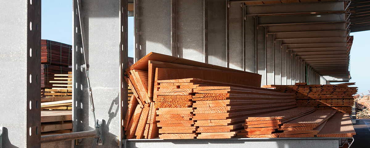 Tot nu toe sloeg Van Dorp Hout de houtstapels met lengtes van één tot acht meter hier in lange rijen op de grond op. Omdat de planken, balken en vloerplanken met de hand worden verzameld, mochten de stapels niet hoger zijn dan anderhalve meter. Hierdoor bleef er veel ongebruikte ruimte over in de opslagruimtes.