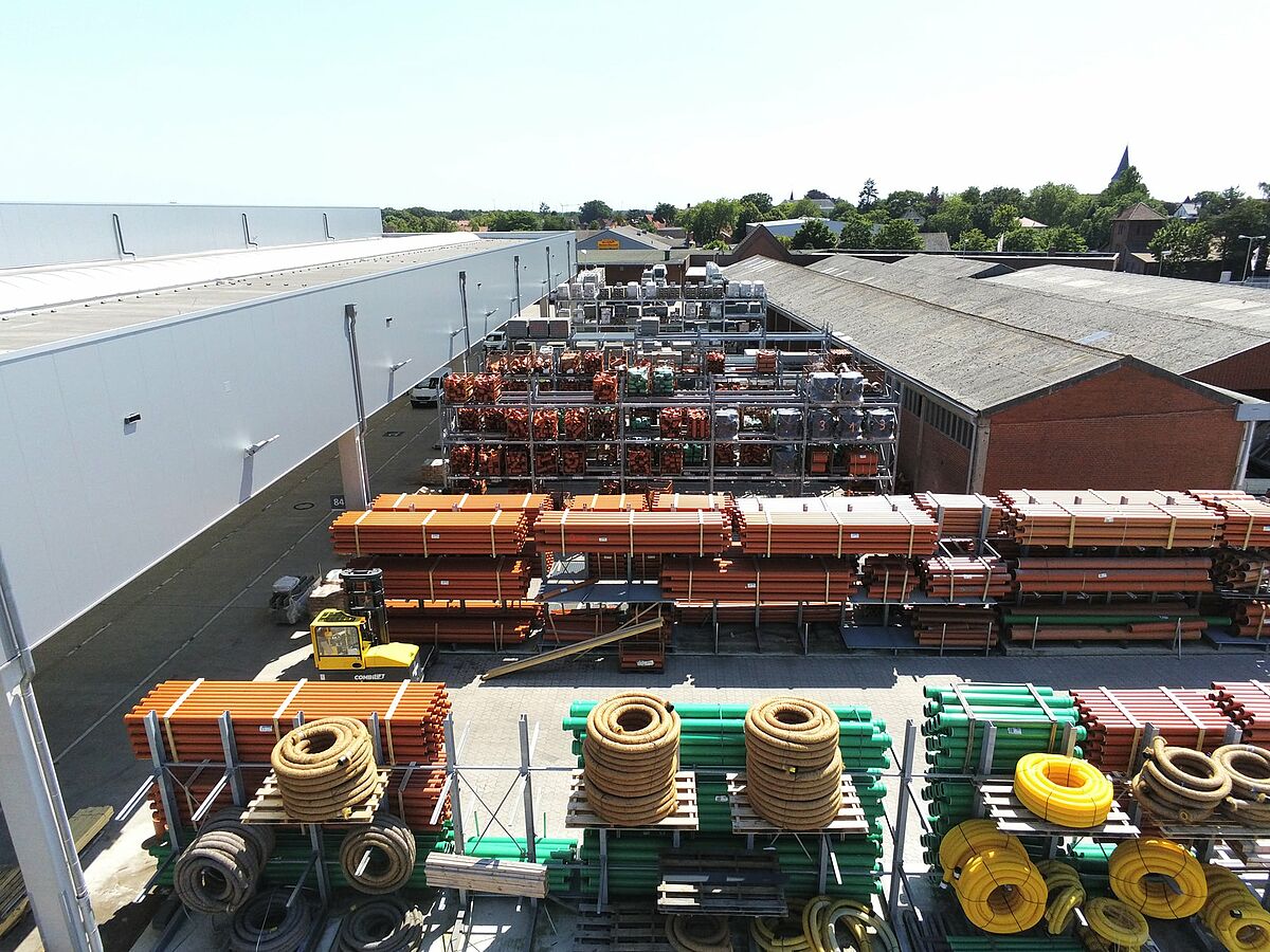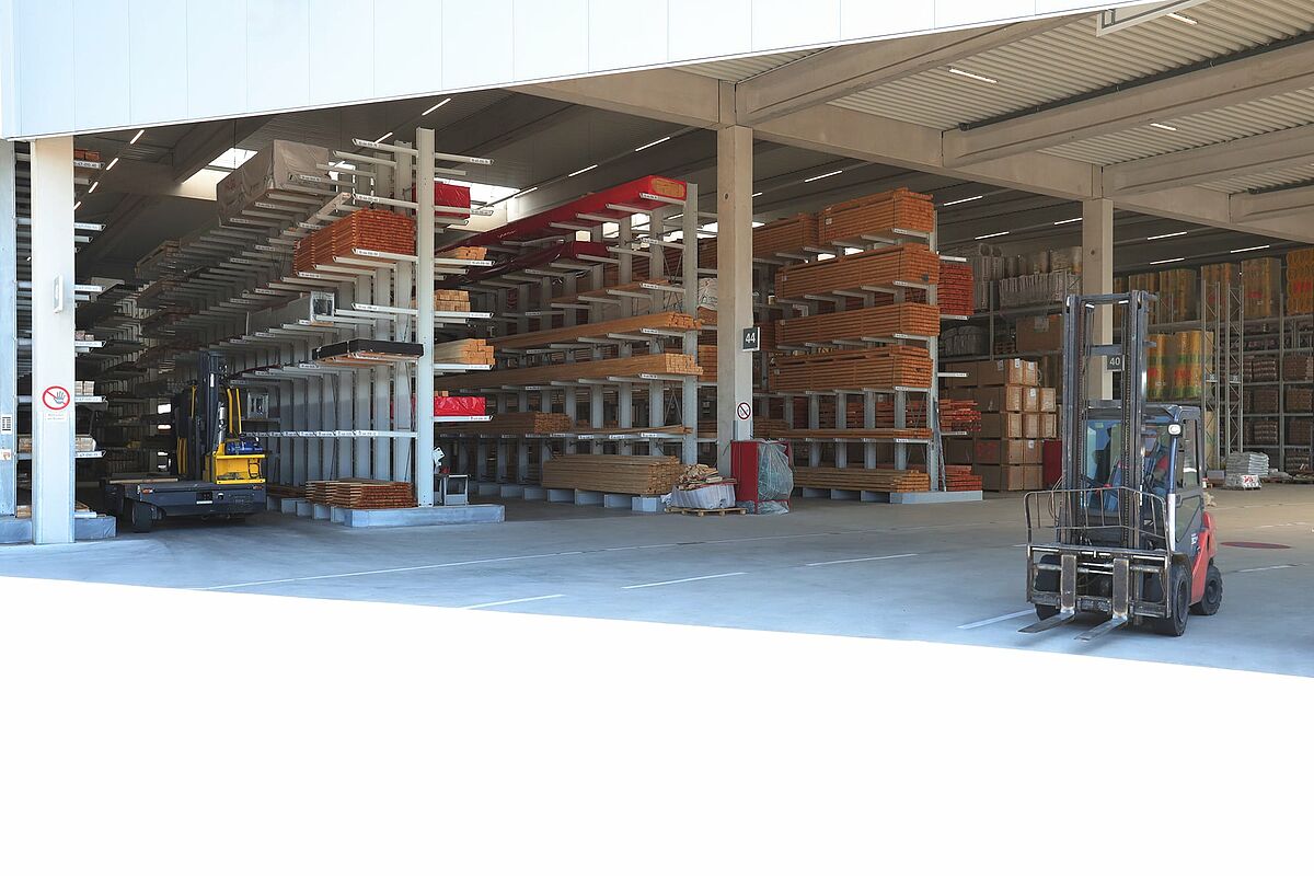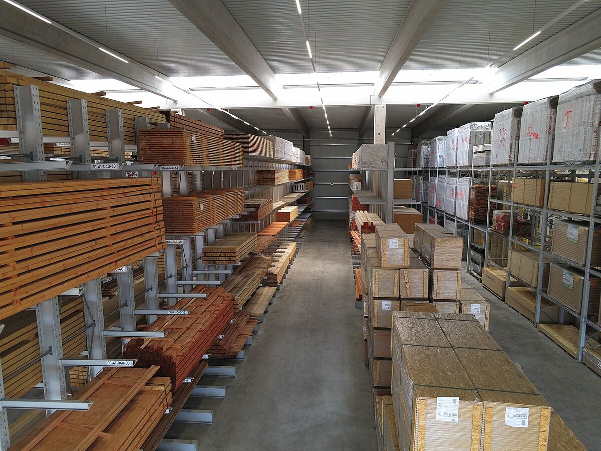 Vehmeyer, één van de grootste handelaren in bouwmaterialen in het Emsland, heeft zijn opslagcapaciteit aanzienlijk uitgebreid met een nieuw magazijn van 5.800 vierkante meter. Binnen een strak tijdsbestek leverde en installeerde OHRA meer dan 25, soms meer dan 42 meter lange en meer dan 7 meter hoge, draagarm- en palletstellingen. Nu kan de grote verscheidenheid aan bouwmaterialen veel overzichtelijker worden opgeslagen. De klanten ontvangen hun goederen sneller, de logistieke processen zijn gestroomlijnd en de algehele materiaalbeschikbaarheid is verhoogd.