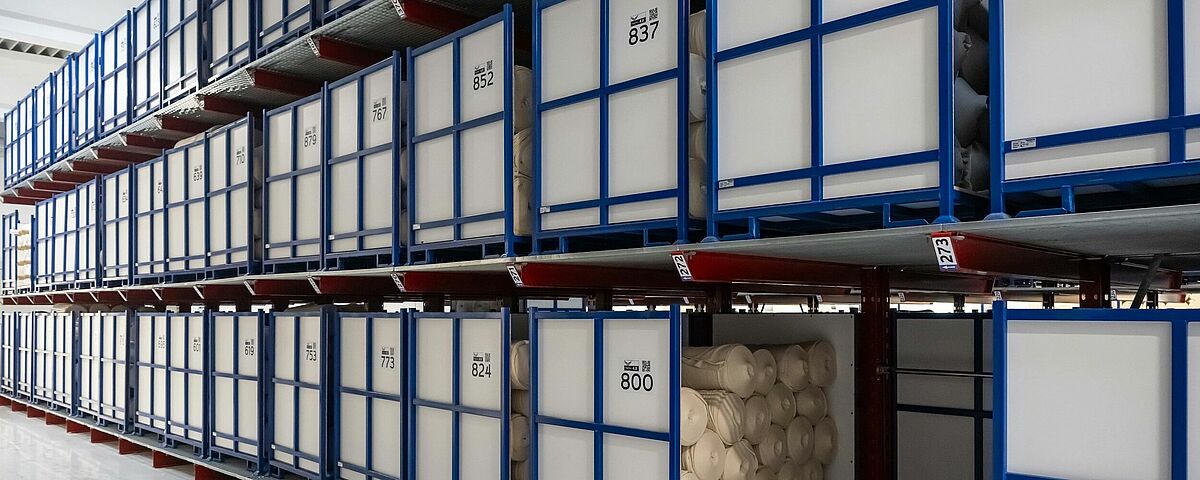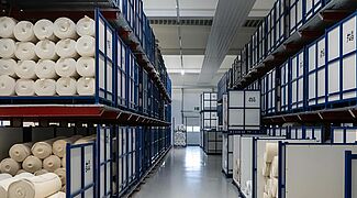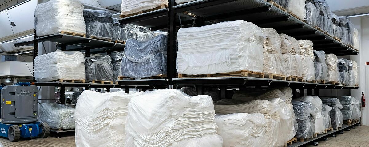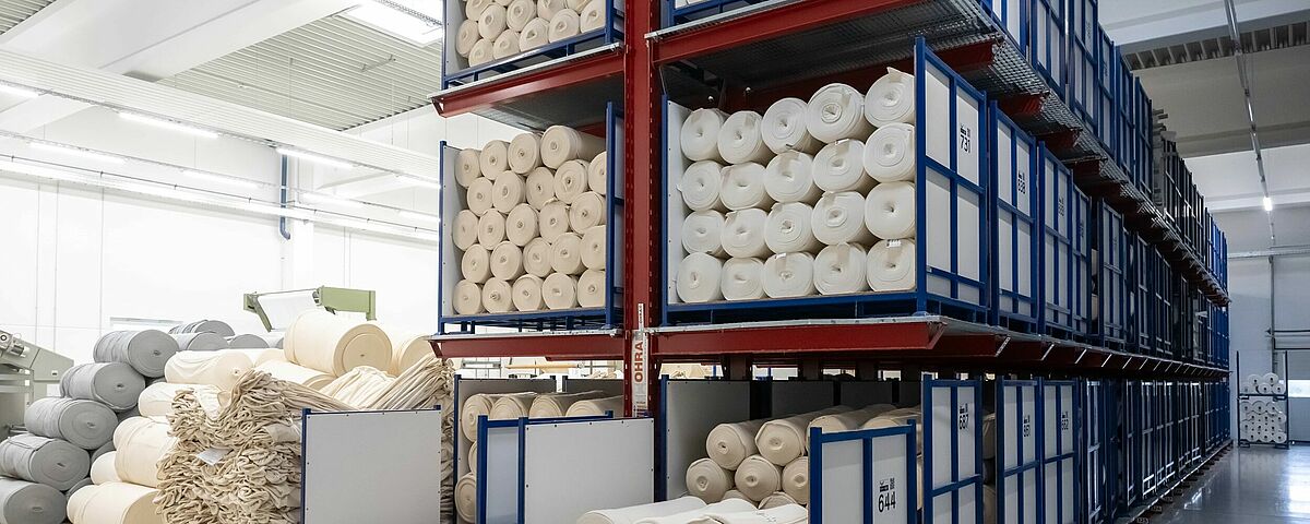 trigema, Duitslands grootste fabrikant van sport- en vrijetijdskleding, wist haar productie aanzienlijk te versnellen door over te schakelen van vloeropslag op palletstellingen. Hiertoe installeerde OHRA draagarm- en palletstellingen voor de tussenopslag van de stoffen die in de eigen breifabriek worden geproduceerd, in afwachting van hun transport naar de afwerkingslijn. De materialen kunnen in verschillende toestanden op roosters worden opgeslagen, ongeacht hun formaat of de opslaghulpmiddelen. Dankzij de opslag in de OHRA-stellingen wist trigema haar productie-efficiëntie met 5 procent te verhogen.